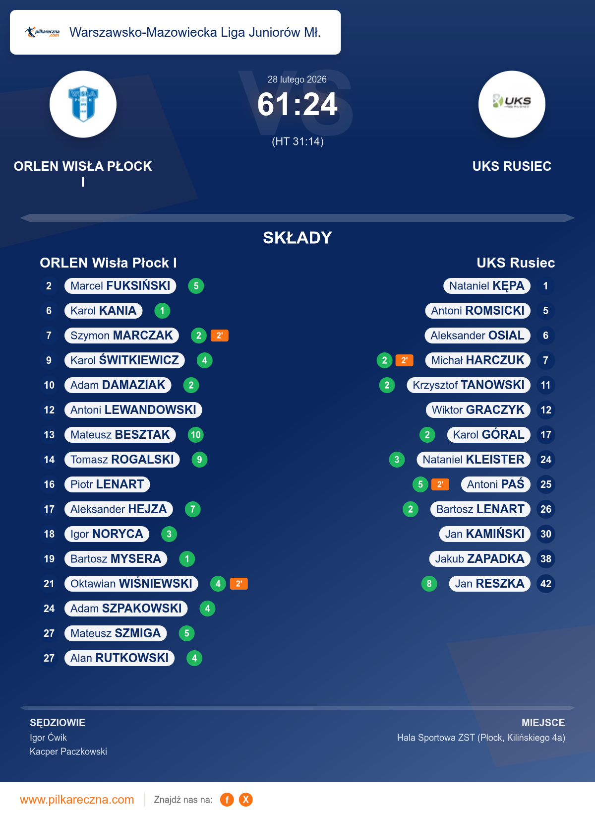 ORLEN Wisła Płock I 61–24 UKS Rusiec