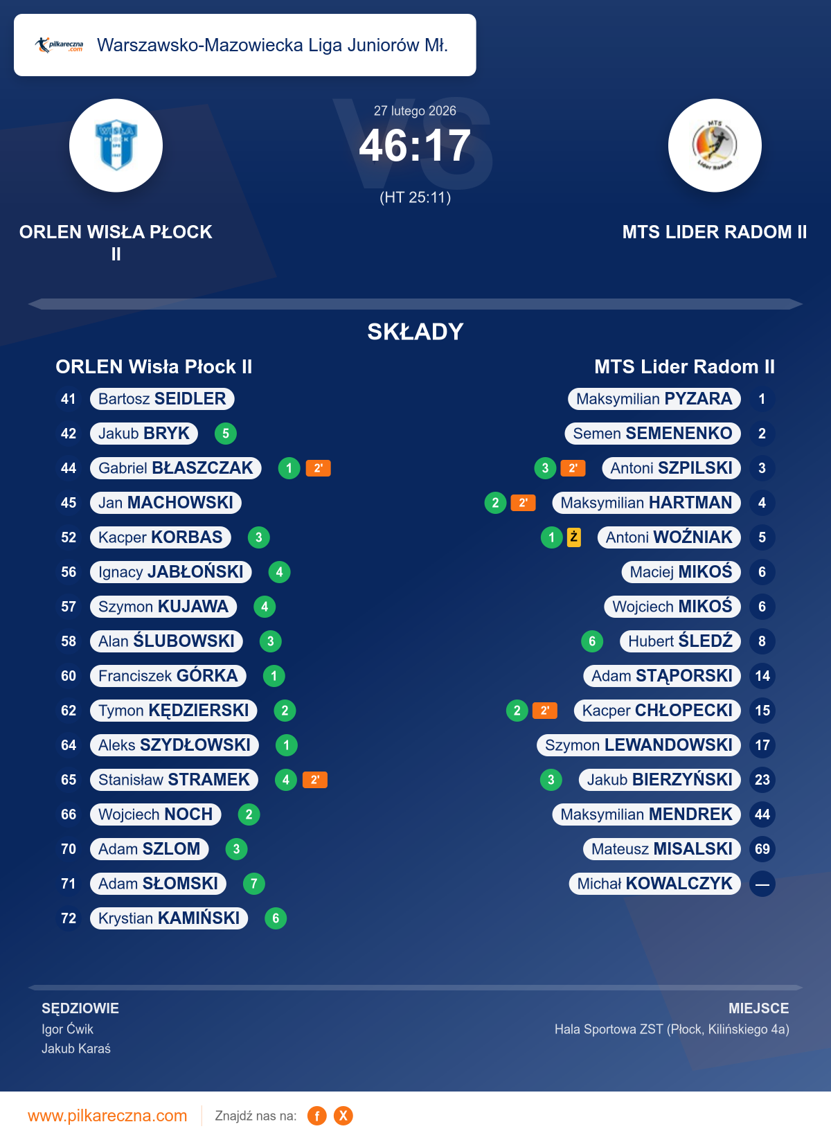 ORLEN Wisła Płock II 46–17 MTS Lider Radom II