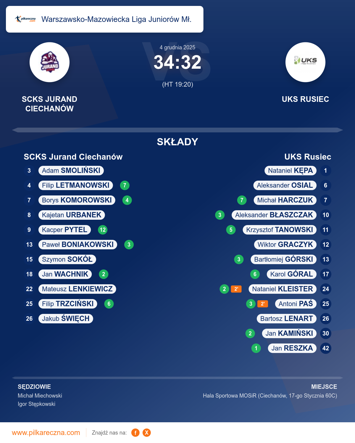 SCKS Jurand Ciechanów 34–32 UKS Rusiec