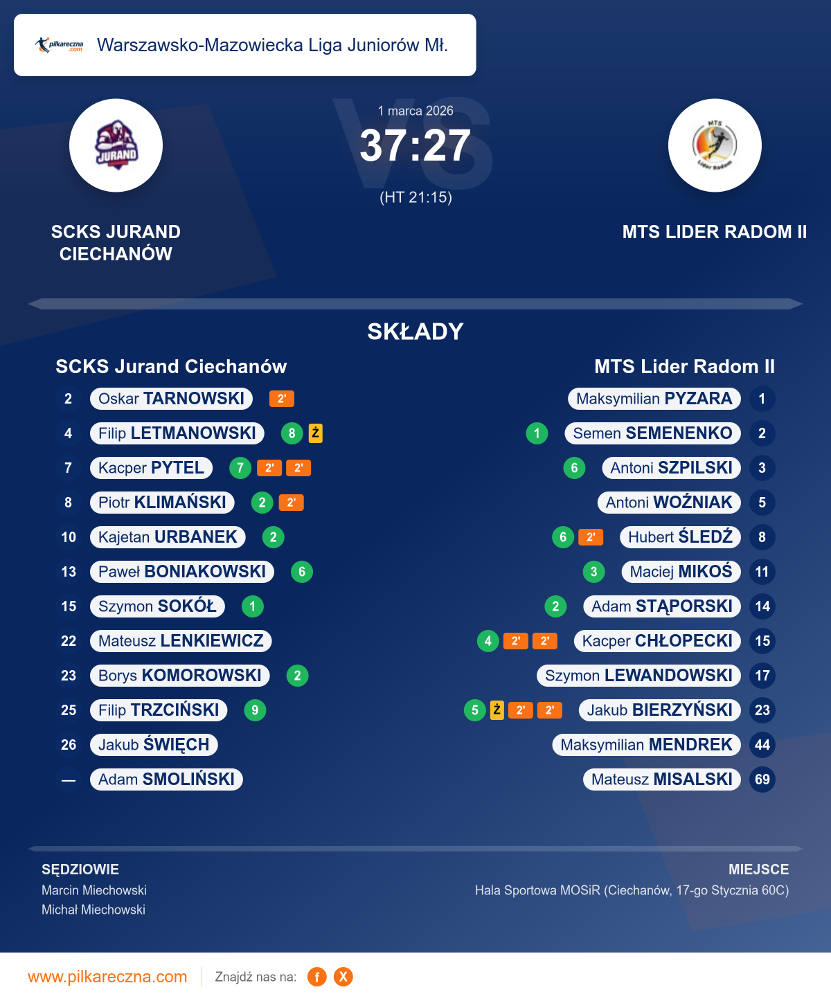 Sędziowali: Marcin Miechowski, Michał Miechowski