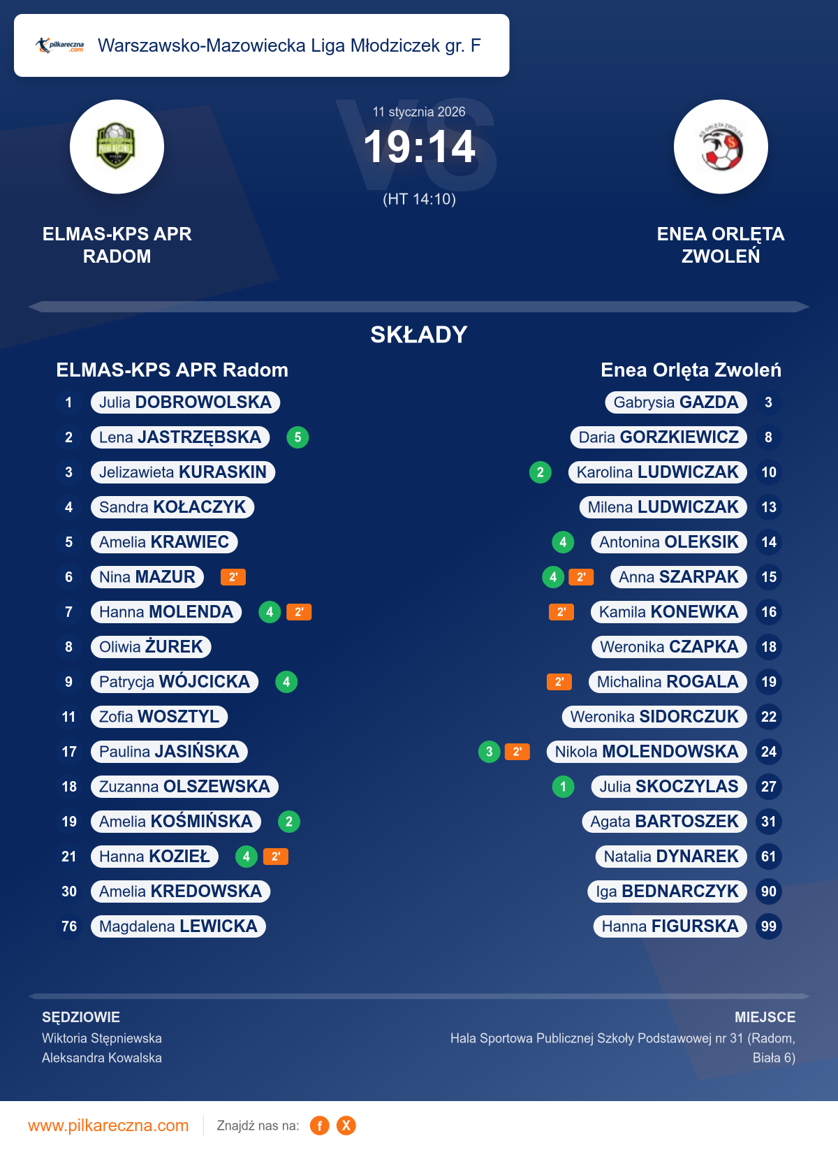 Bramkarze: Julia Dobrowolska, Magdalena Lewicka