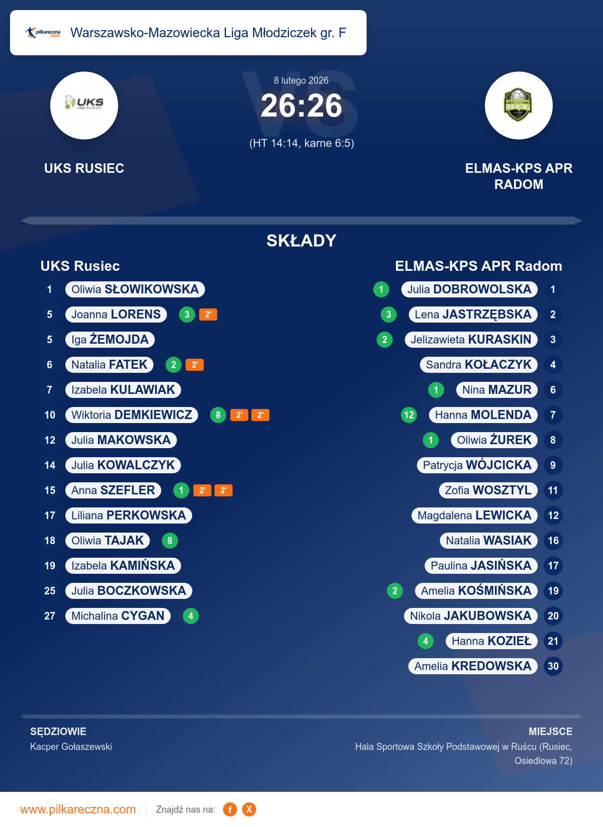 UKS Rusiec 26–26 ELMAS-KPS APR Radom