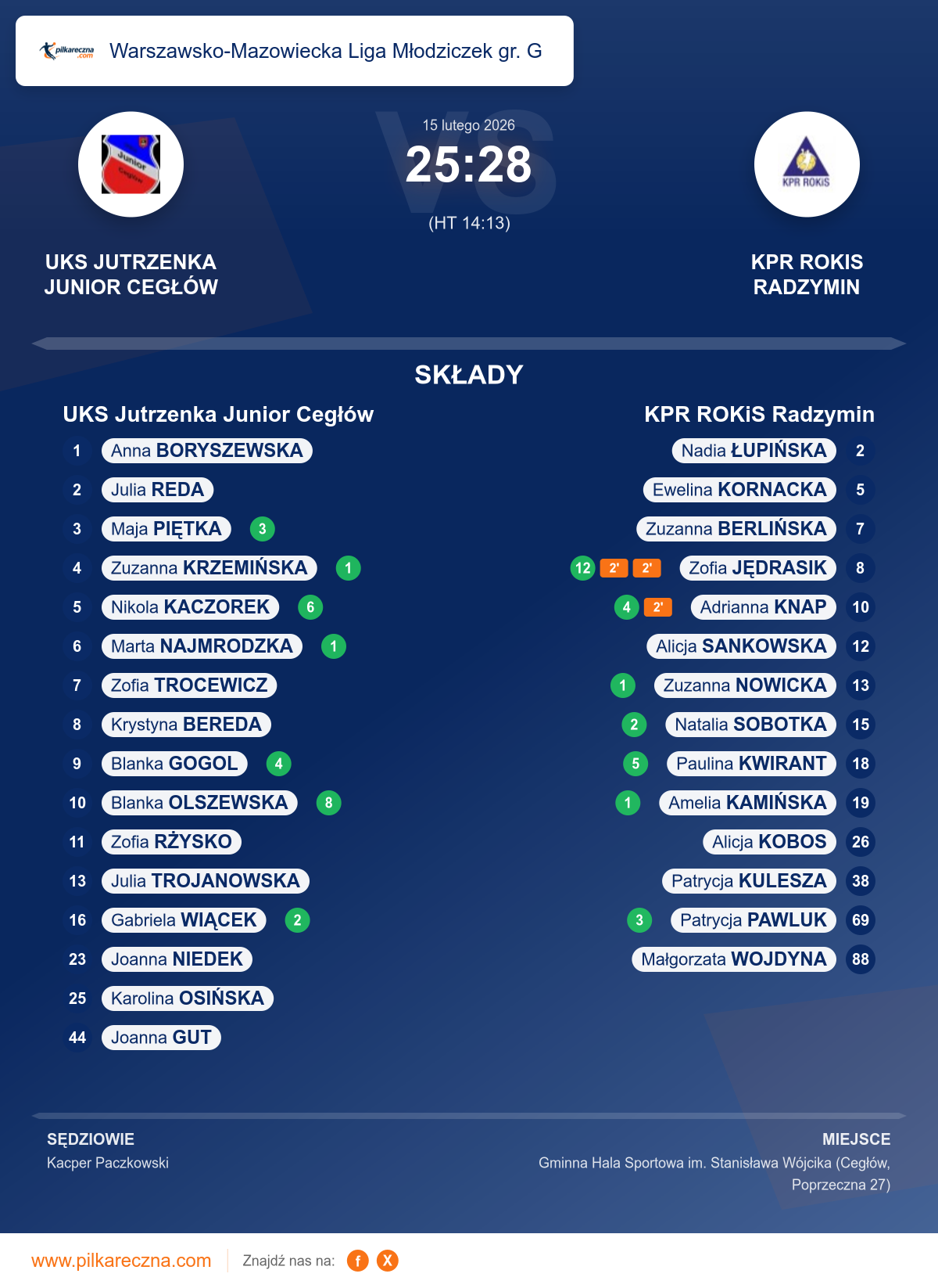 UKS Jutrzenka Junior Cegłów 25–28 KPR ROKiS Radzymin