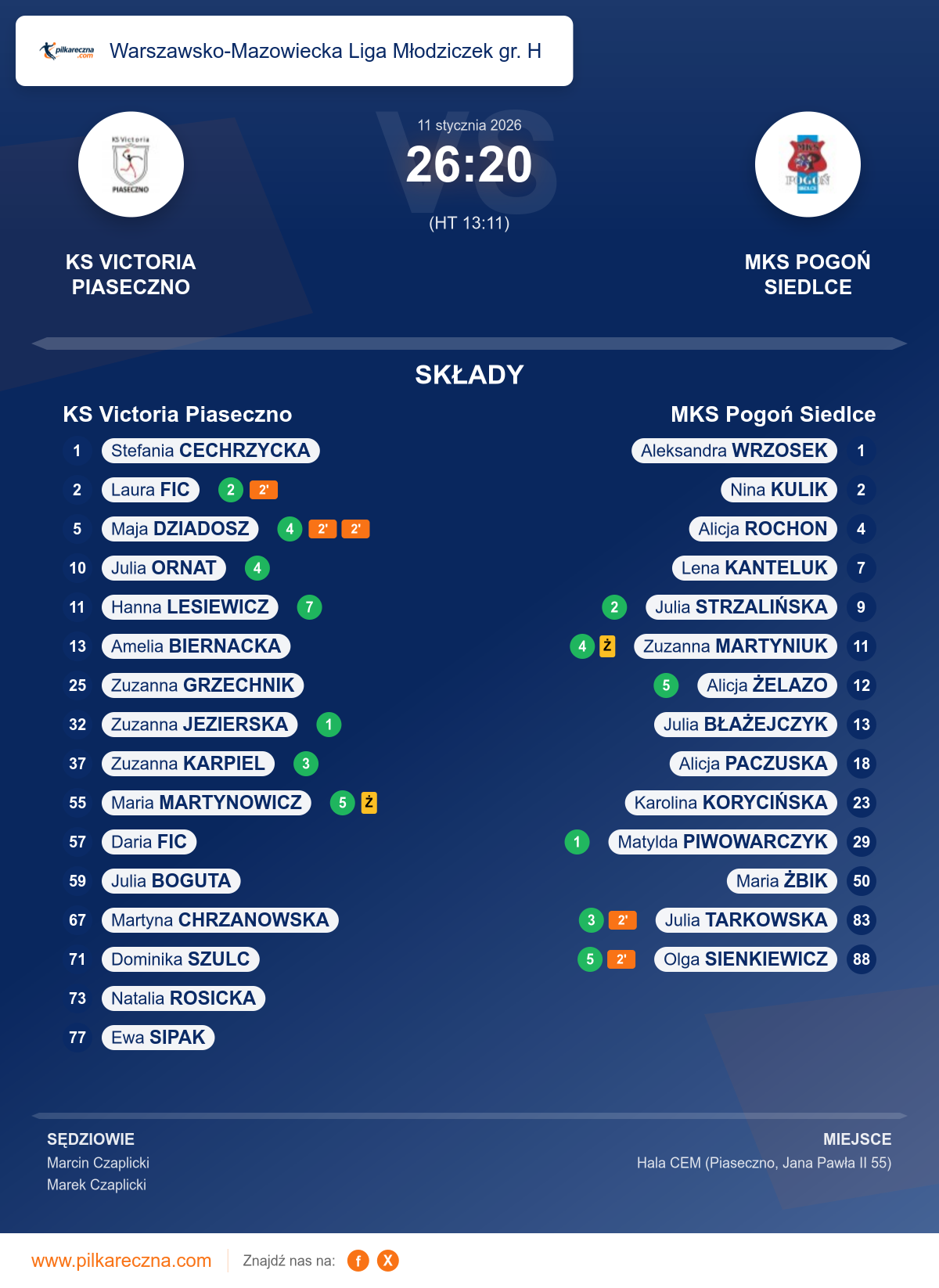 KS Victoria Piaseczno 26–20 MKS Pogoń Siedlce