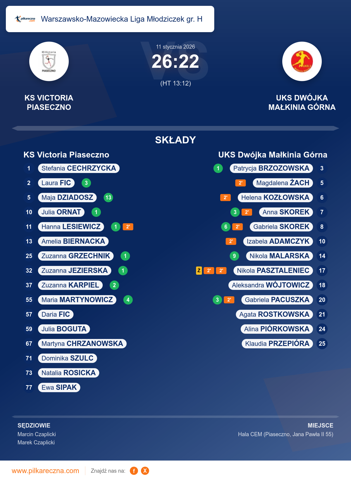 KS Victoria Piaseczno 26–22 UKS Dwójka Małkinia Górna