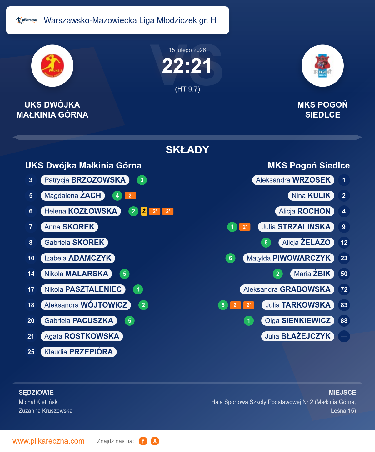 UKS Dwójka Małkinia Górna 22–21 MKS Pogoń Siedlce
