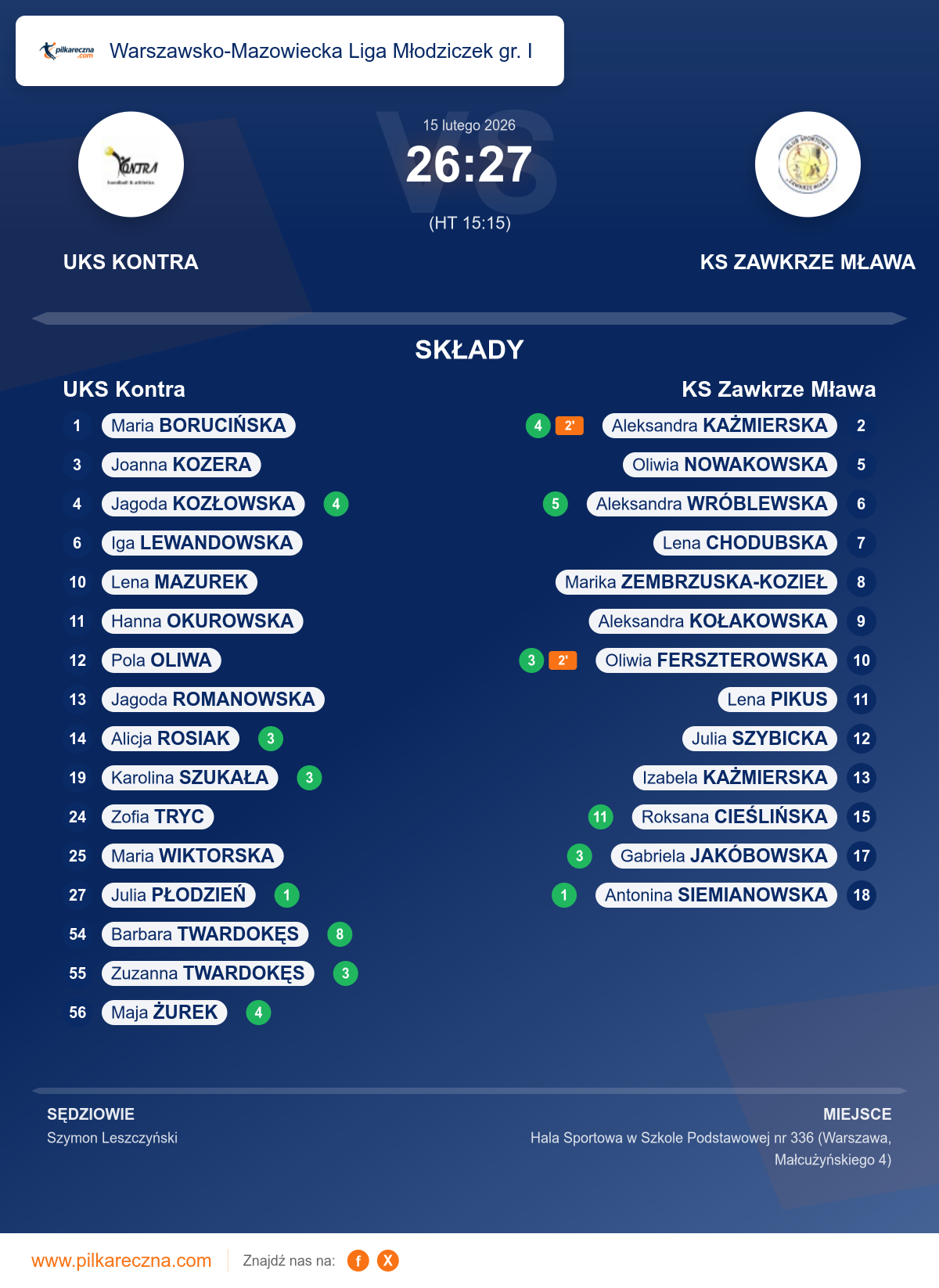 Zawodnicy: Roksana Cieślińska (11), Aleksandra Wróblewska (5), Aleksandra Każmierska (4), Gabriela Jakóbowska (3), Oliwia Ferszterowska (3), Antonina Siemianowska (1), Aleksandra Kołakowska, Izabela Każmierska, Julia Szybicka, Lena Chodubska, Lena Pikus, Marika Zembrzuska-kozieł, Oliwia Nowakowska