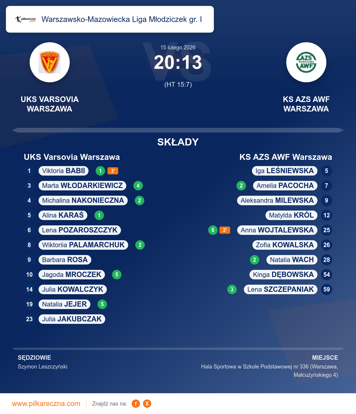 UKS Varsovia Warszawa 20–13 KS AZS AWF Warszawa