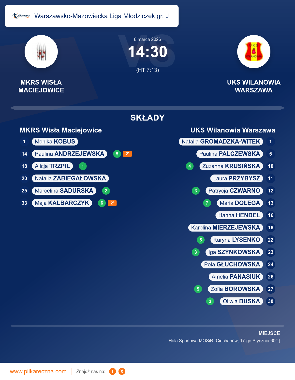 MKRS Wisła Maciejowice — UKS Wilanowia Warszawa