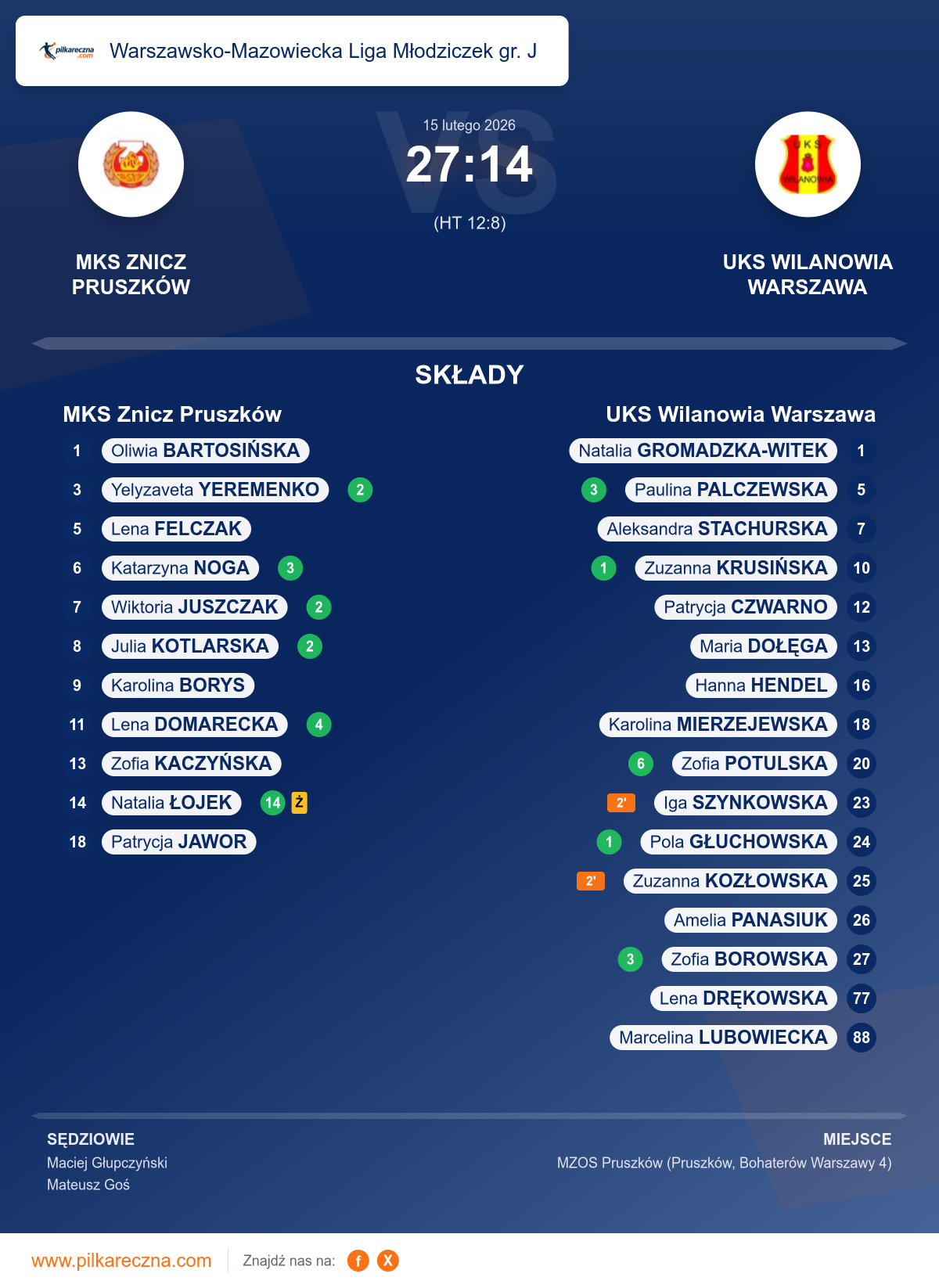 MKS Znicz Pruszków 27–14 UKS Wilanowia Warszawa