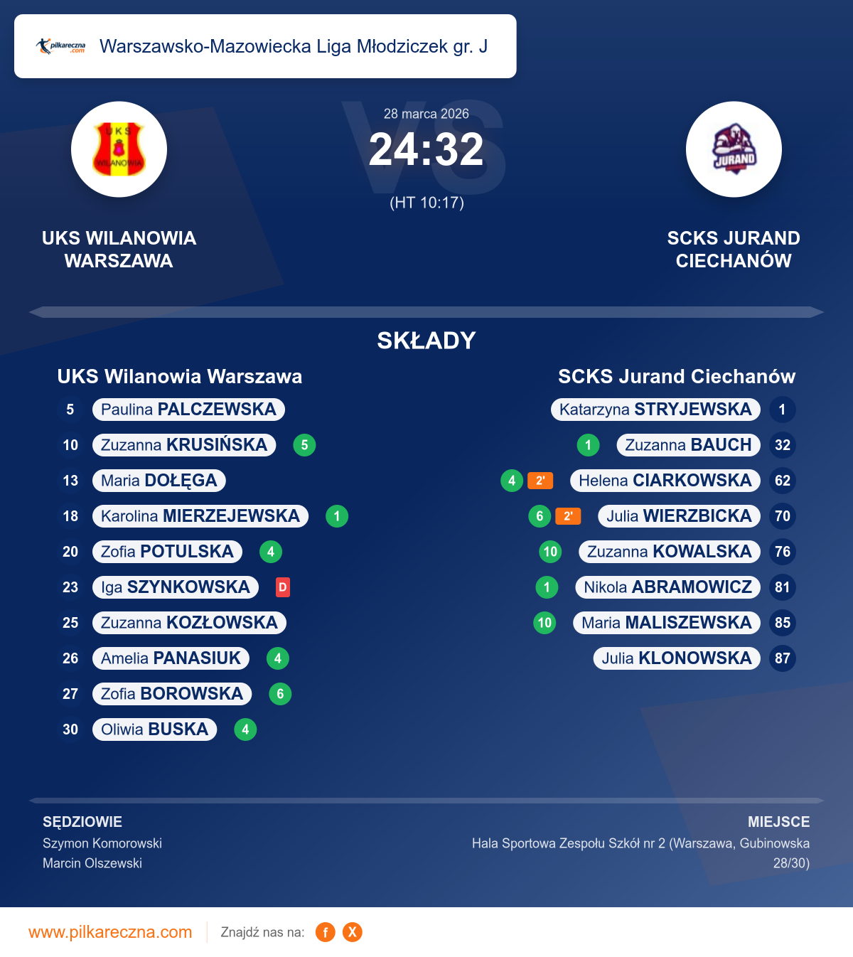 UKS Wilanowia Warszawa — SCKS Jurand Ciechanów
