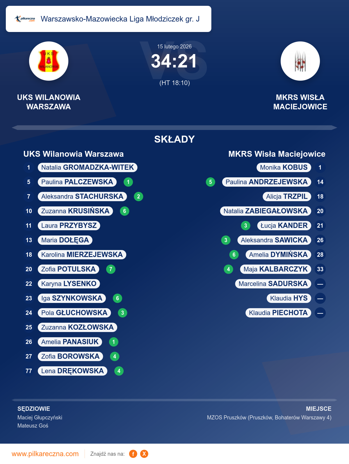 UKS Wilanowia Warszawa 34–21 MKRS Wisła Maciejowice