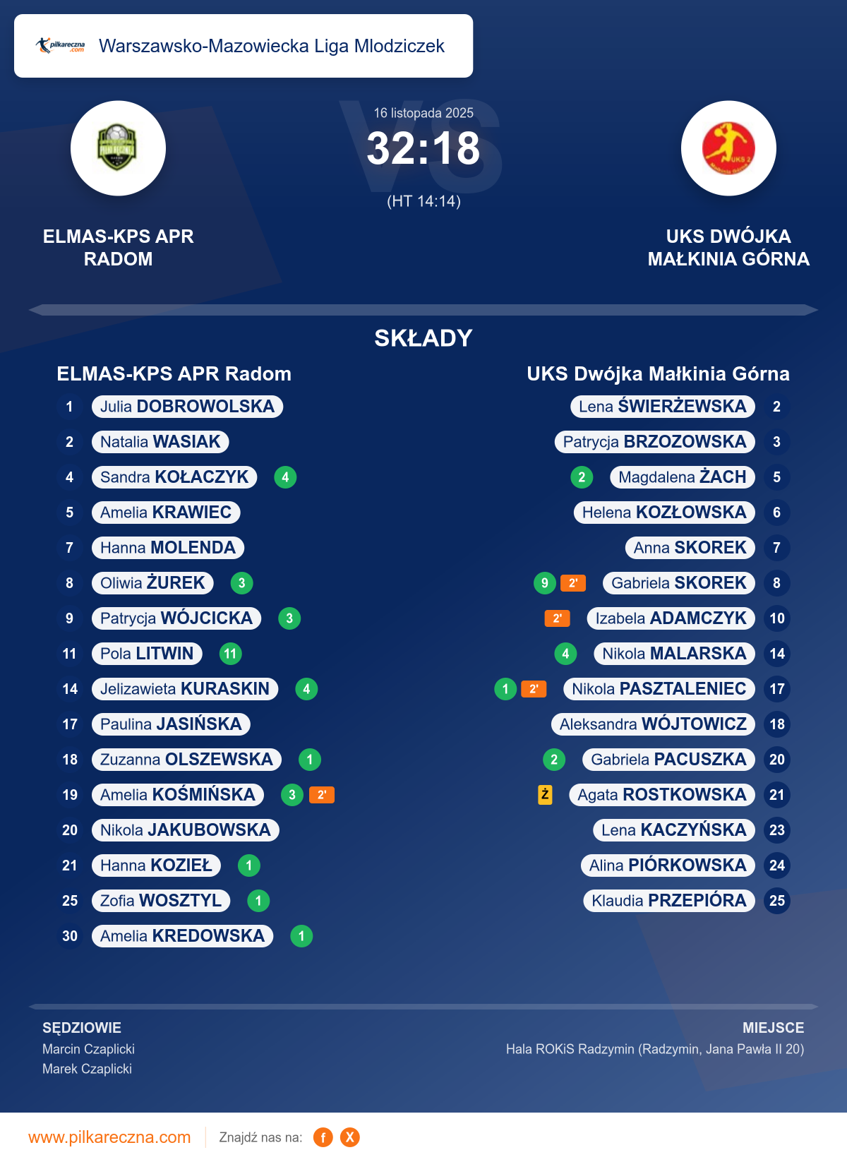 Bramkarze: Julia Dobrowolska, Pola Litwin
