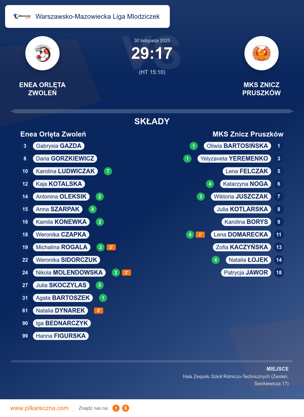 Enea Orlęta Zwoleń 29–17 MKS Znicz Pruszków