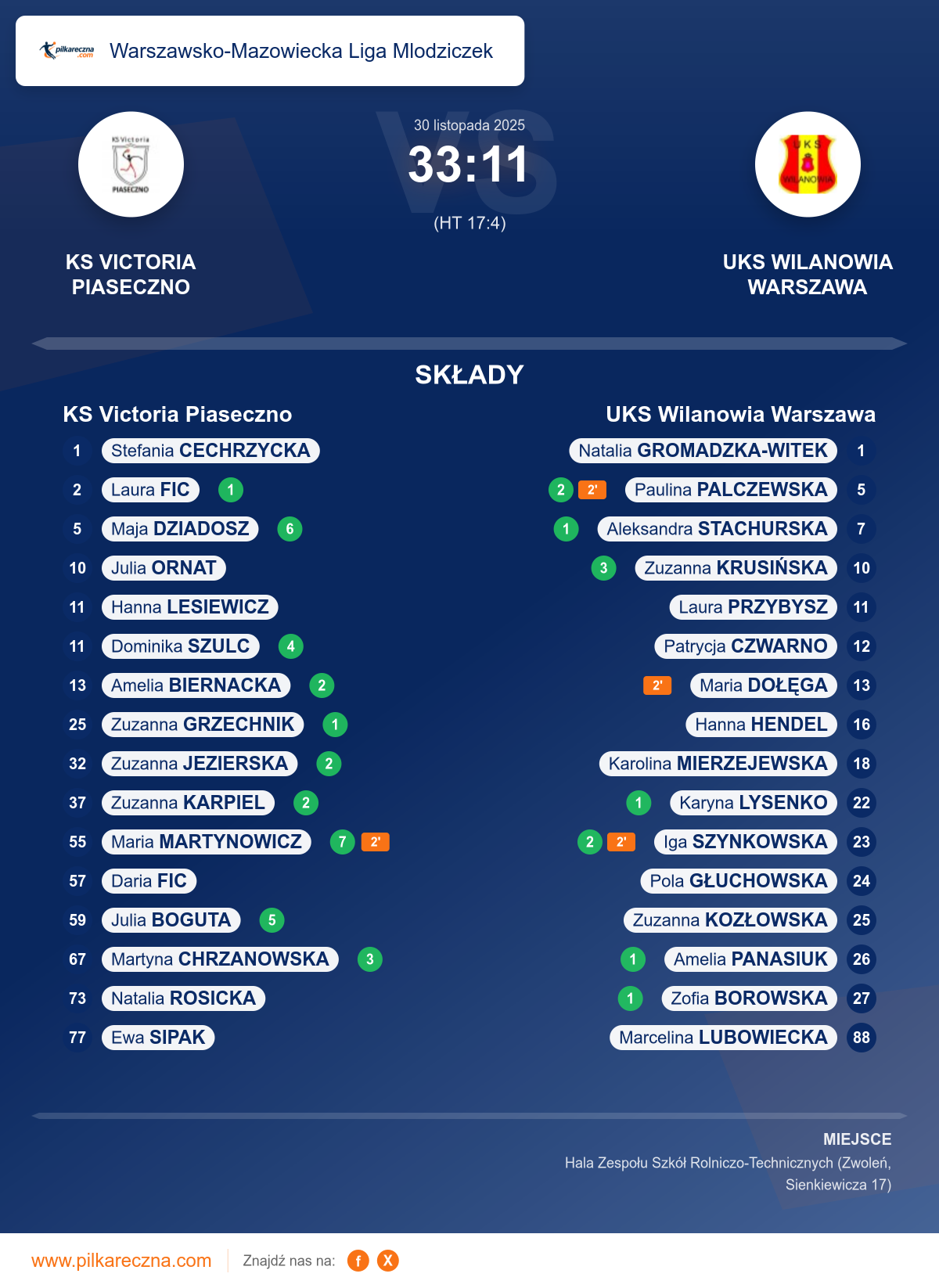 KS Victoria Piaseczno 33–11 UKS Wilanowia Warszawa
