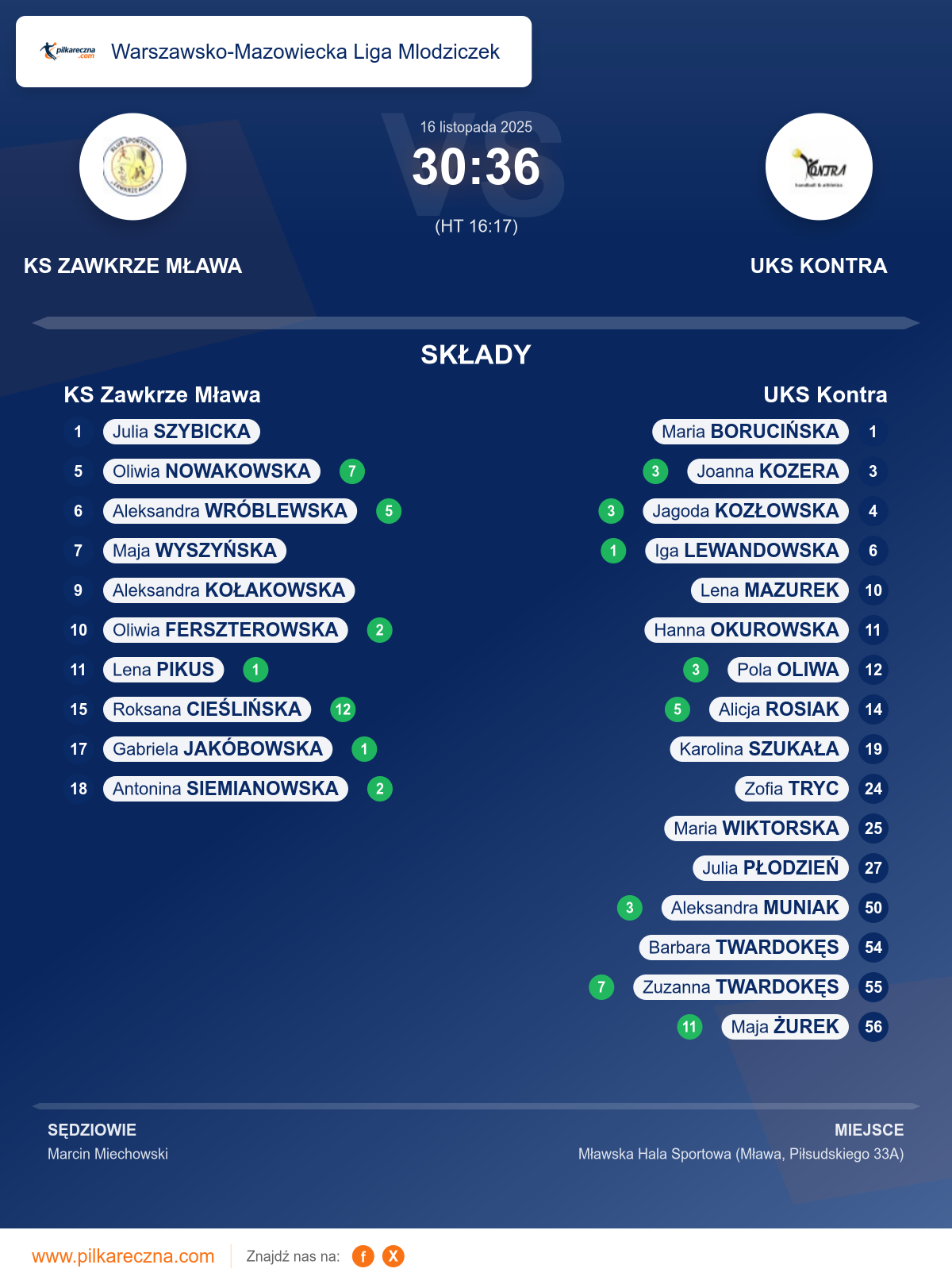 Zawodnicy: Roksana Cieślińska (12), Oliwia Nowakowska (7), Aleksandra Wróblewska (5), Antonina Siemianowska (2), Oliwia Ferszterowska (2), Gabriela Jakóbowska (1), Lena Pikus (1), Aleksandra Kołakowska, Julia Szybicka, Maja Wyszyńska