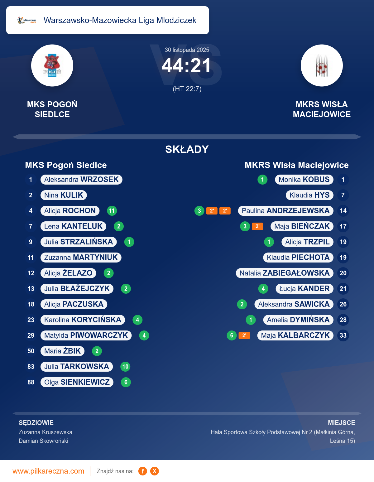 MKS Pogoń Siedlce 44–21 MKRS Wisła Maciejowice