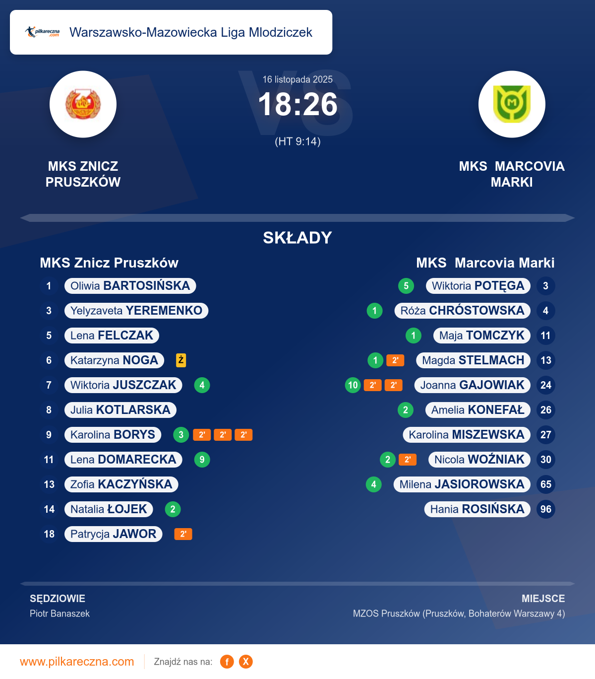 MKS Znicz Pruszków 18–26 MKS Marcovia Marki