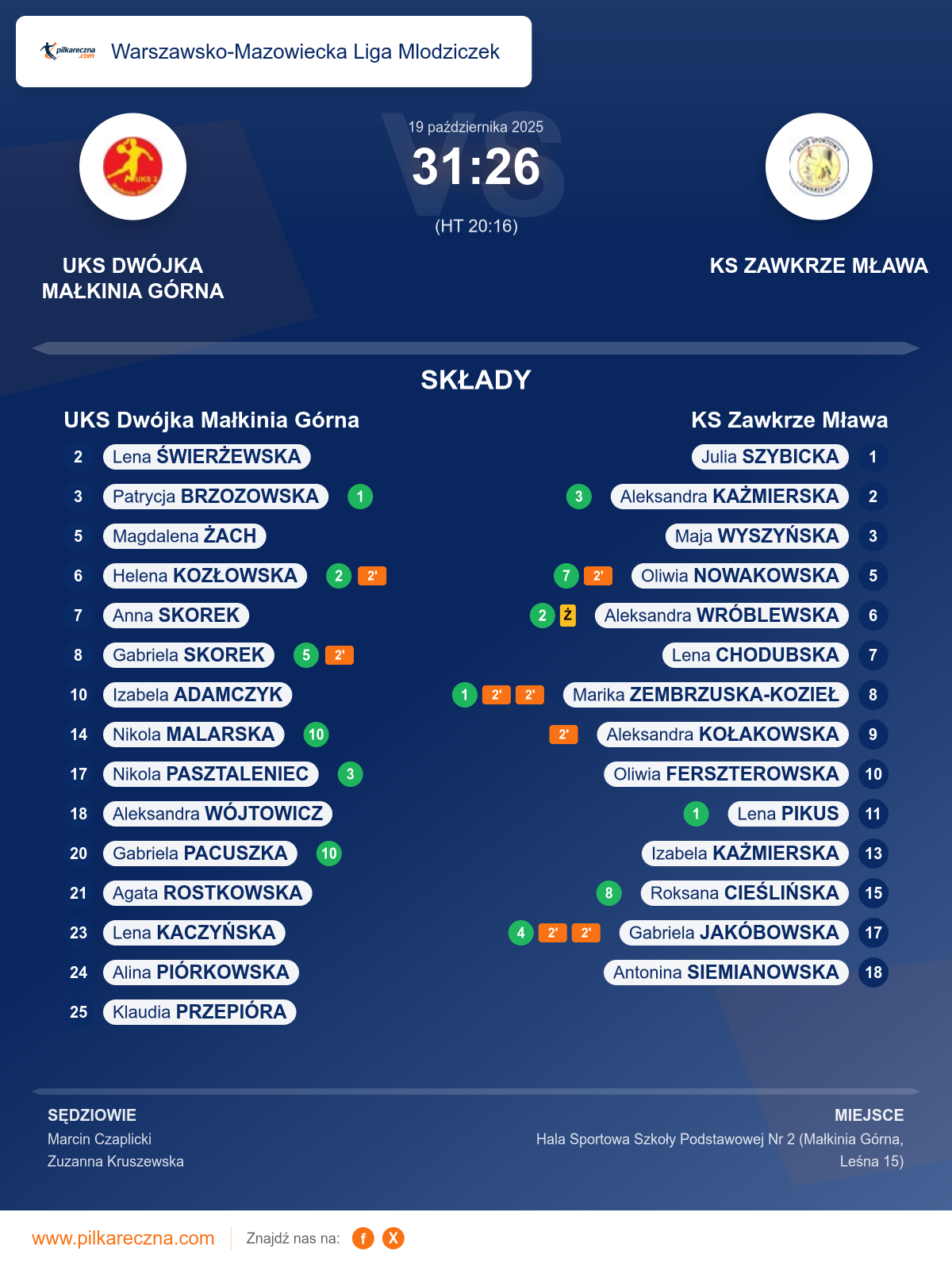 UKS Dwójka Małkinia Górna 31–26 KS Zawkrze Mława