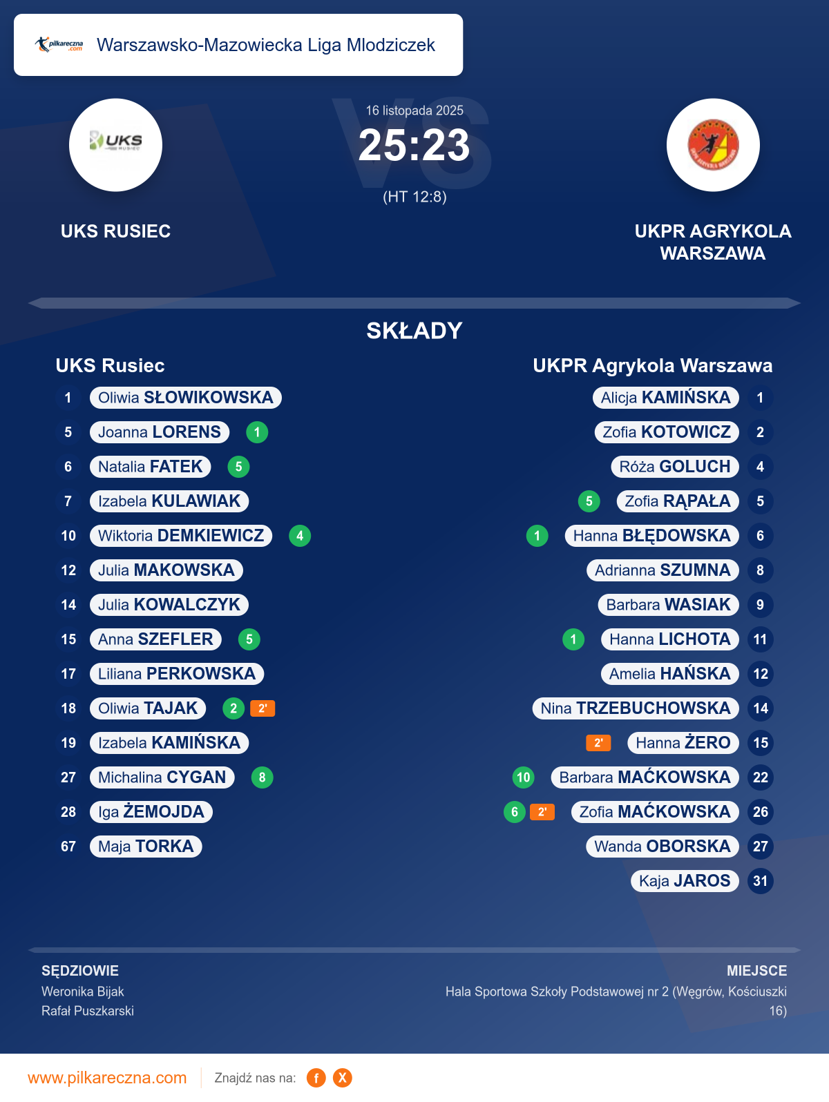 UKS Rusiec 25–23 UKPR Agrykola Warszawa