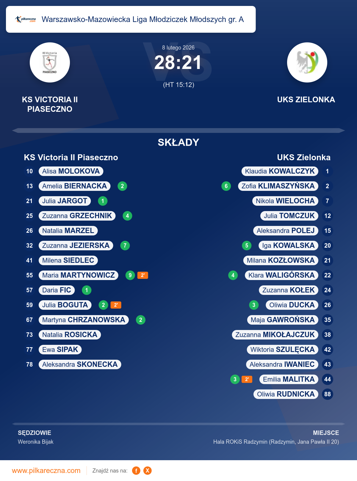 KS Victoria II Piaseczno 28–21 UKS Zielonka