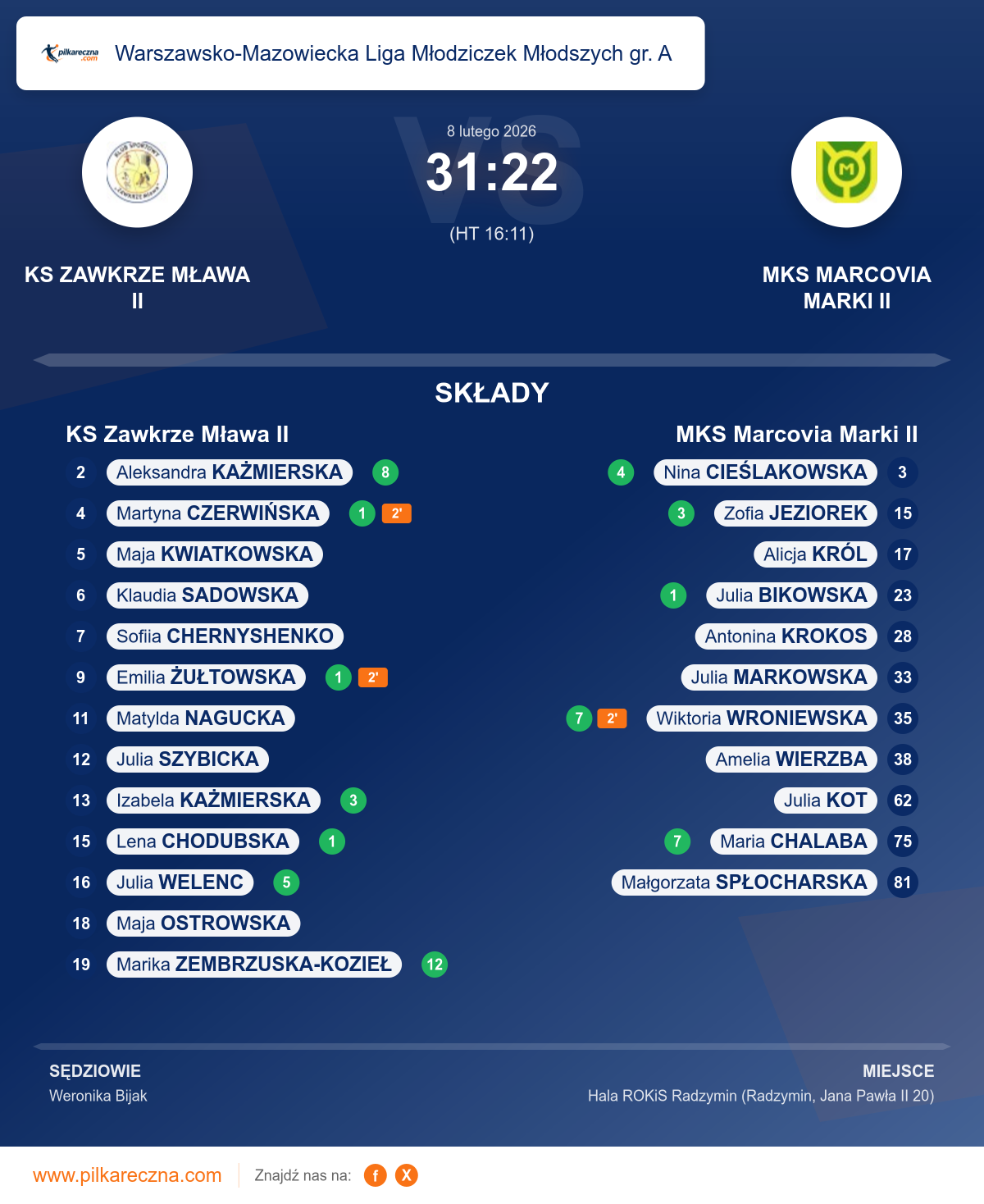 KS Zawkrze Mława II 31–22 MKS Marcovia Marki II