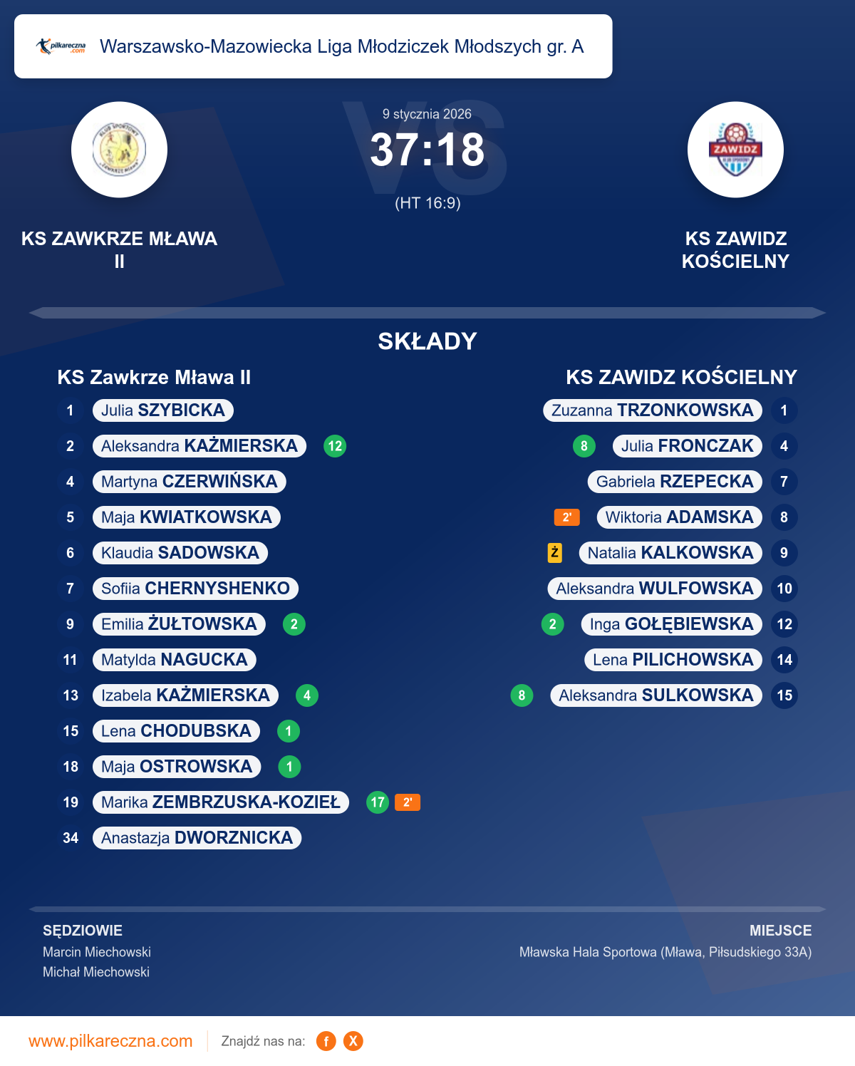 KS Zawkrze Mława II 37–18 KS ZAWIDZ KOŚCIELNY