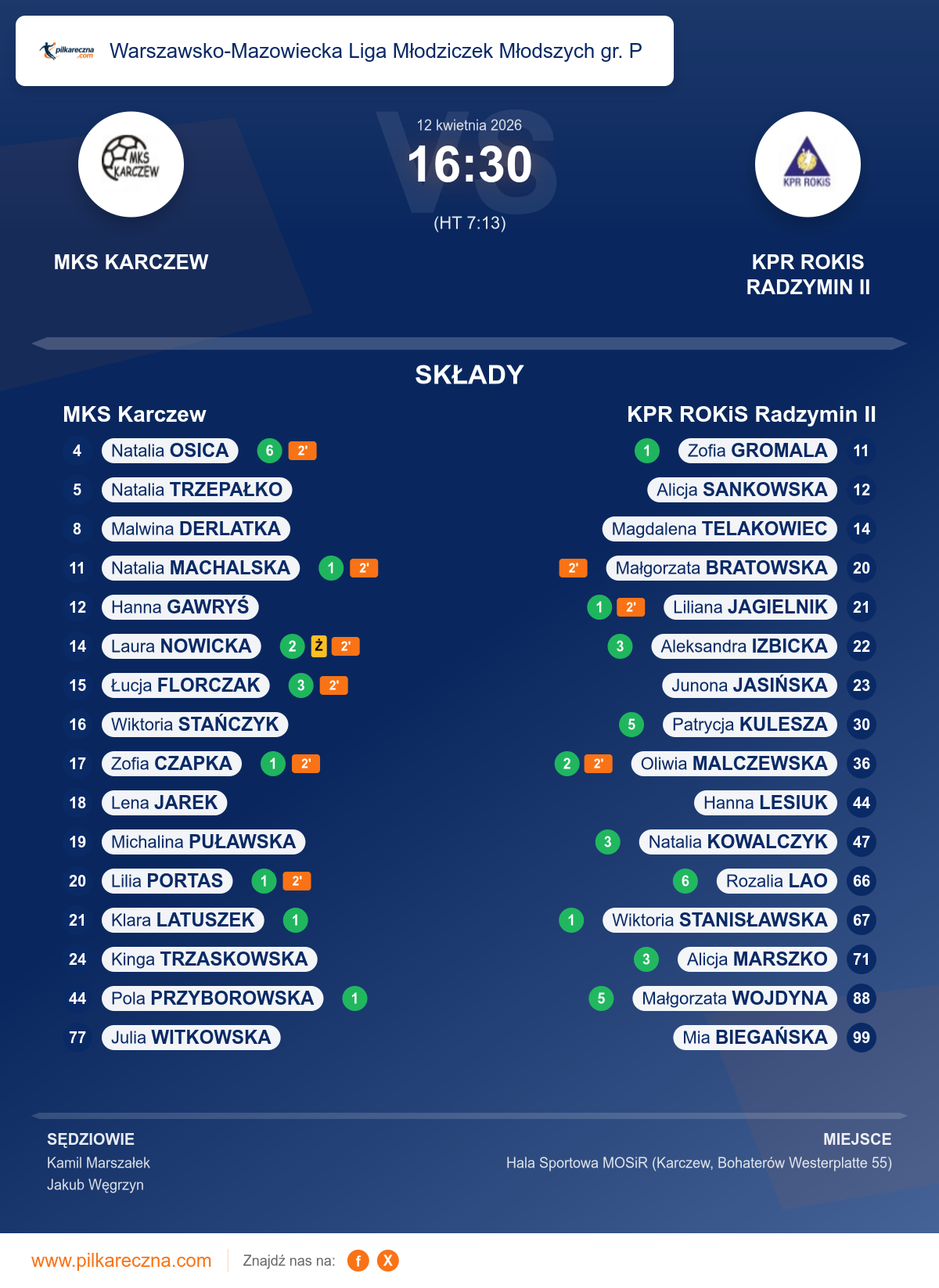 Sędziowali: Kamil Marszałek, Jakub Węgrzyn