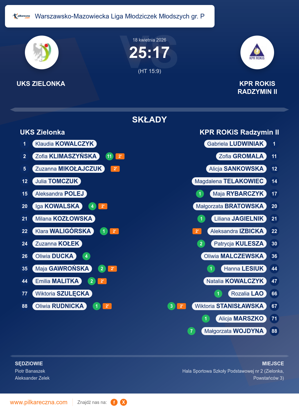 UKS Zielonka 25–17 KPR ROKiS Radzymin II