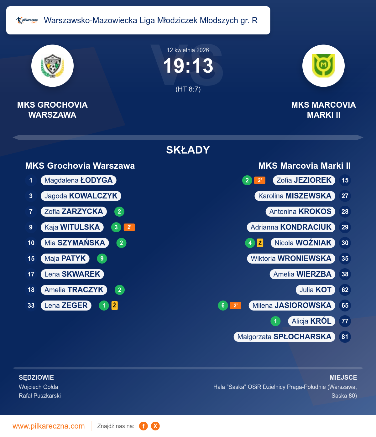 MKS Grochovia Warszawa 19–13 MKS Marcovia Marki II