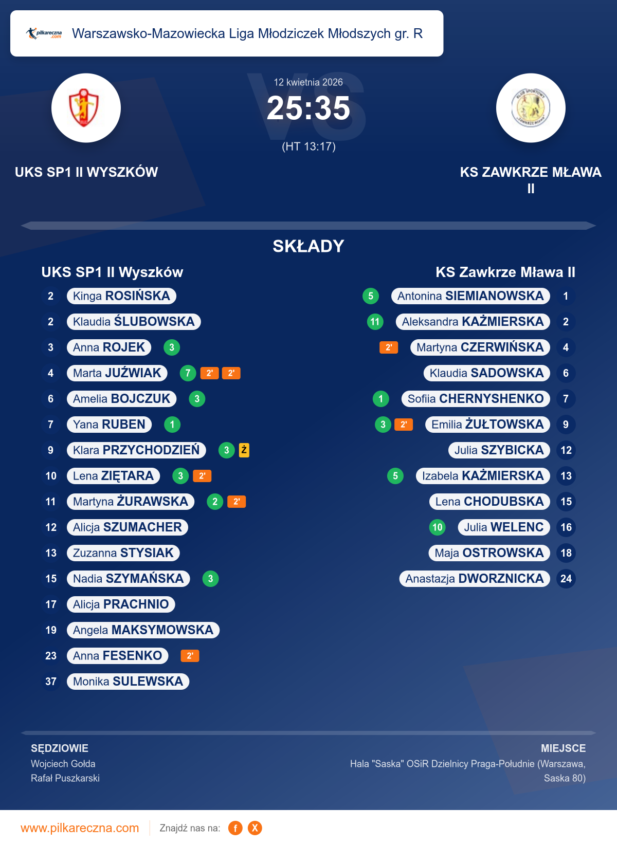 Zawodnicy: Marta Juźwiak (7), Amelia Bojczuk (3), Anna Rojek (3), Klara Przychodzień (3), Lena Ziętara (3), Nadia Szymańska (3), Martyna Żurawska (2), Yana Ruben (1), Alicja Prachnio, Alicja Szumacher, Angela Maksymowska, Anna Fesenko, Kinga Rosińska, Klaudia Ślubowska, Monika Sulewska, Zuzanna Stysiak
