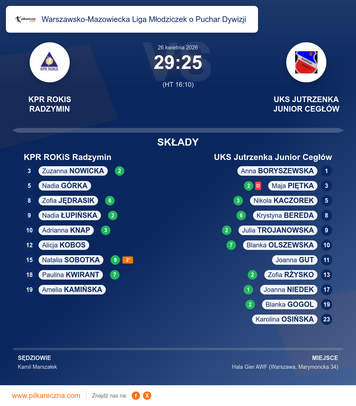 KPR ROKiS Radzymin 29–25 UKS Jutrzenka Junior Cegłów