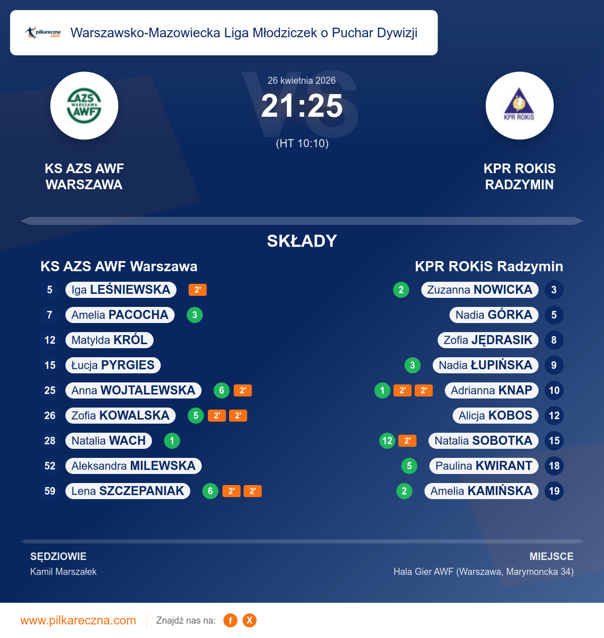 KS AZS AWF Warszawa — KPR ROKiS Radzymin