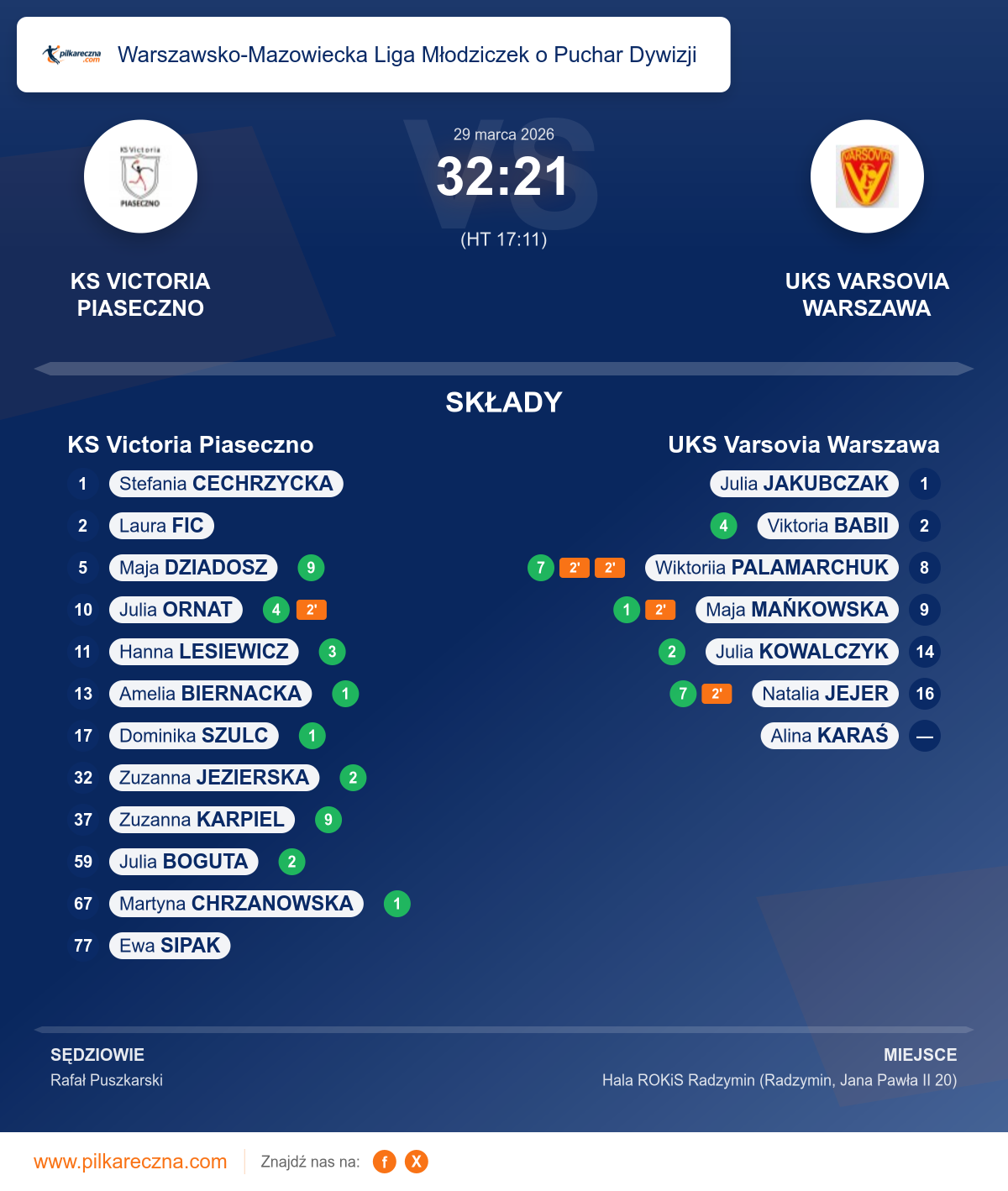 KS Victoria Piaseczno 32–21 UKS Varsovia Warszawa