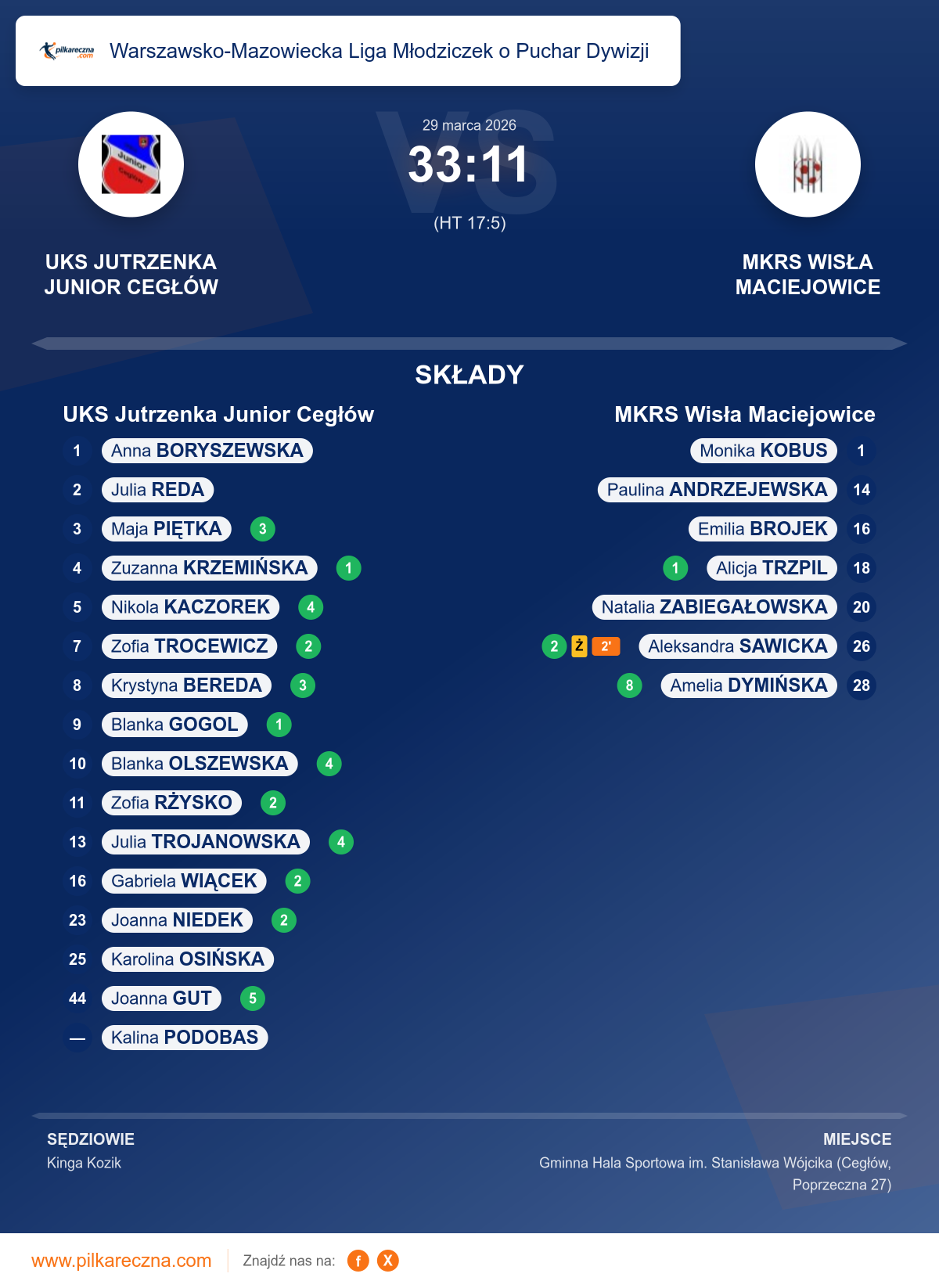 UKS Jutrzenka Junior Cegłów 33–11 MKRS Wisła Maciejowice
