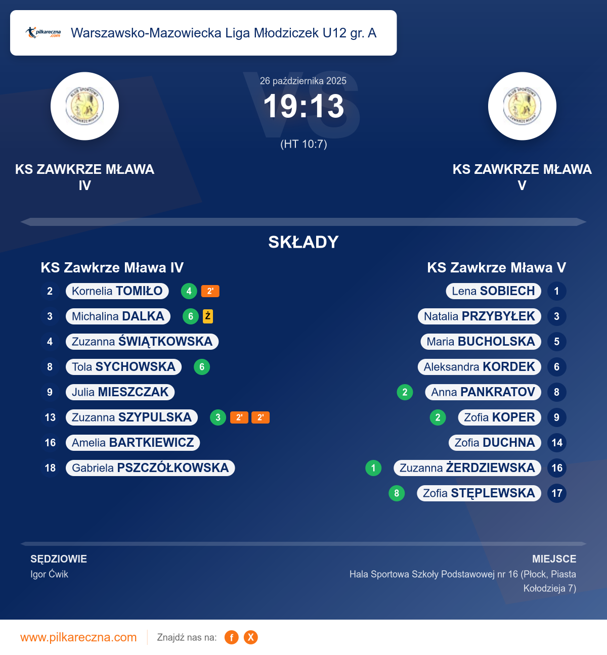 KS Zawkrze Mława IV 19–13 KS Zawkrze Mława V