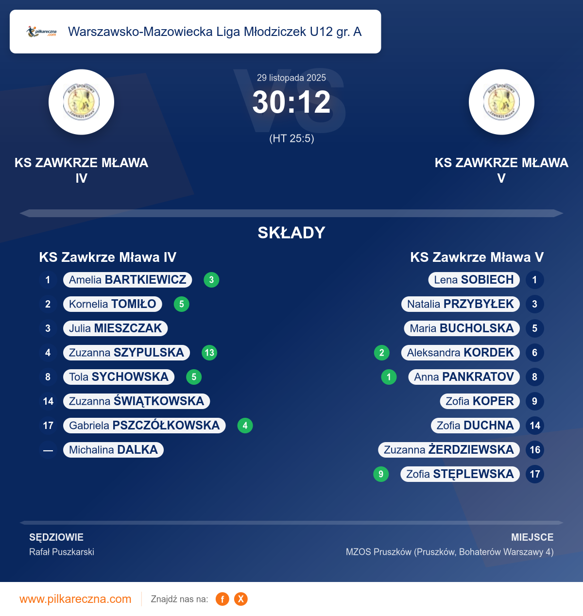 KS Zawkrze Mława IV 30–12 KS Zawkrze Mława V
