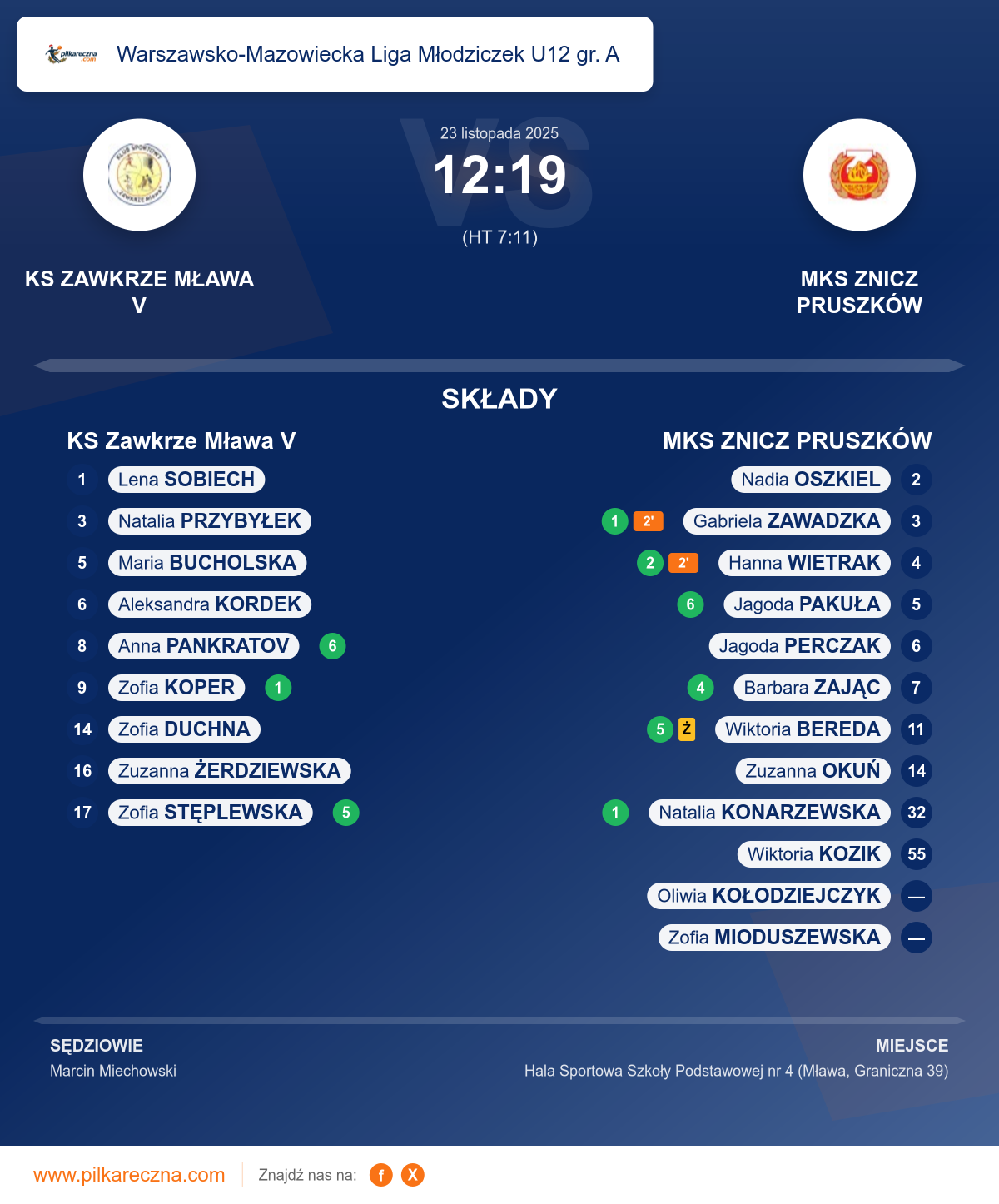 KS Zawkrze Mława V 12–19 MKS ZNICZ PRUSZKÓW