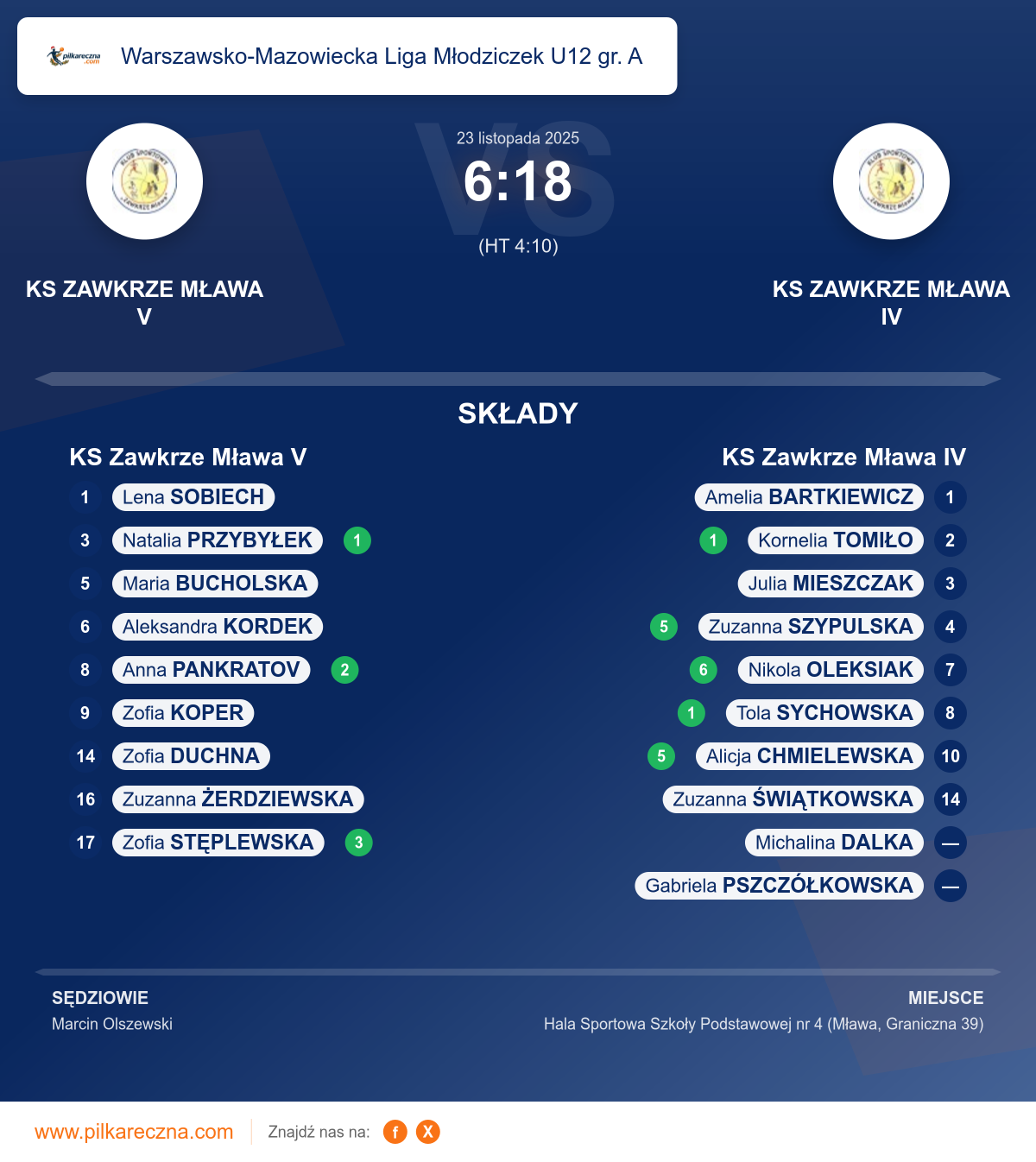 KS Zawkrze Mława V 6–18 KS Zawkrze Mława IV