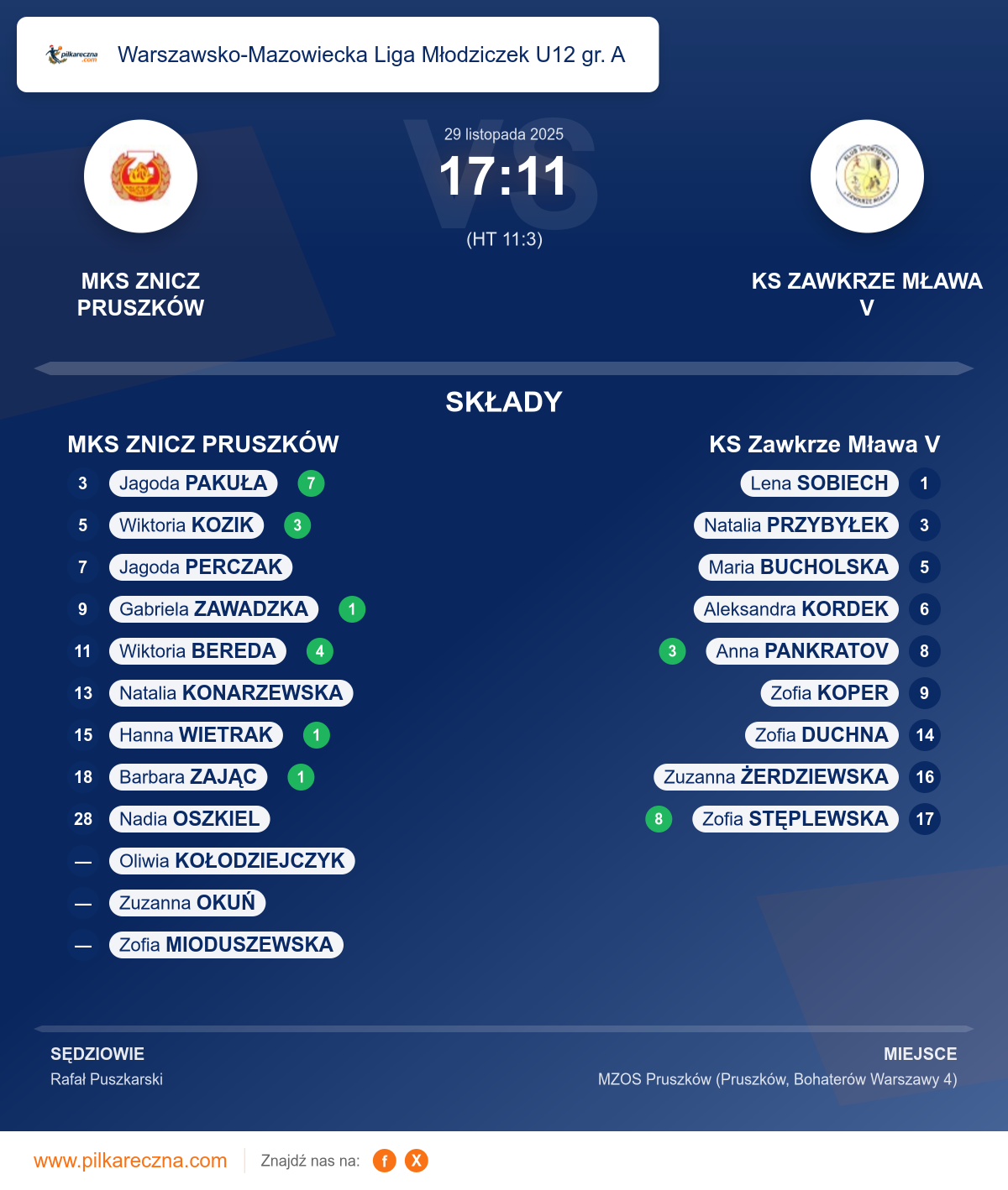 MKS ZNICZ PRUSZKÓW 17–11 KS Zawkrze Mława V
