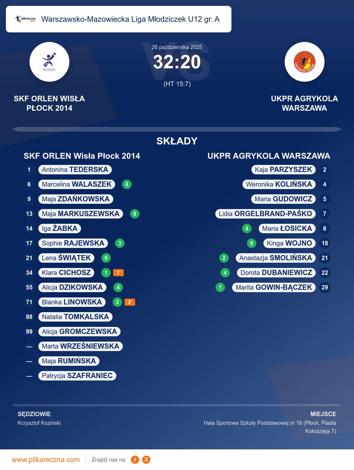 Zawodnicy: Maja Markuszewska (8), Marcelina Walaszek (8), Lena Świątek (6), Alicja Dzikowska (4), Sophie Rajewska (3), Blanka Linowska (2), Klara Cichosz (1), Alicja Gromczewska, Iga Żabka, Maja Rumińska, Maja Zdańkowska, Marta Wrześniewska, Natalia Tomkalska, Patrycja Szafraniec