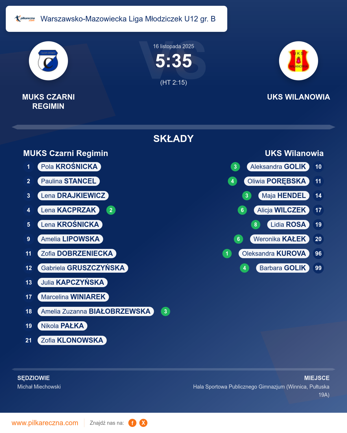 MUKS Czarni Regimin 5–35 UKS Wilanowia