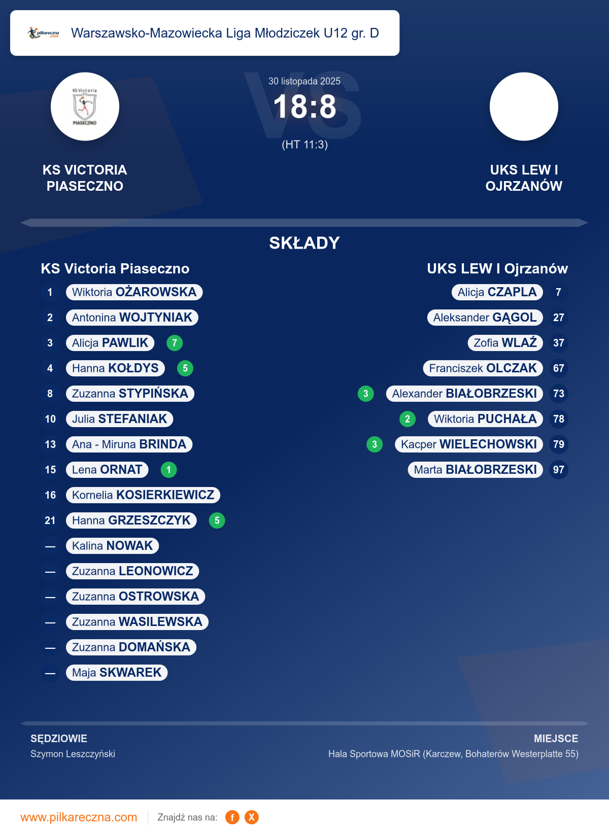 KS Victoria Piaseczno 18–8 UKS LEW I Ojrzanów