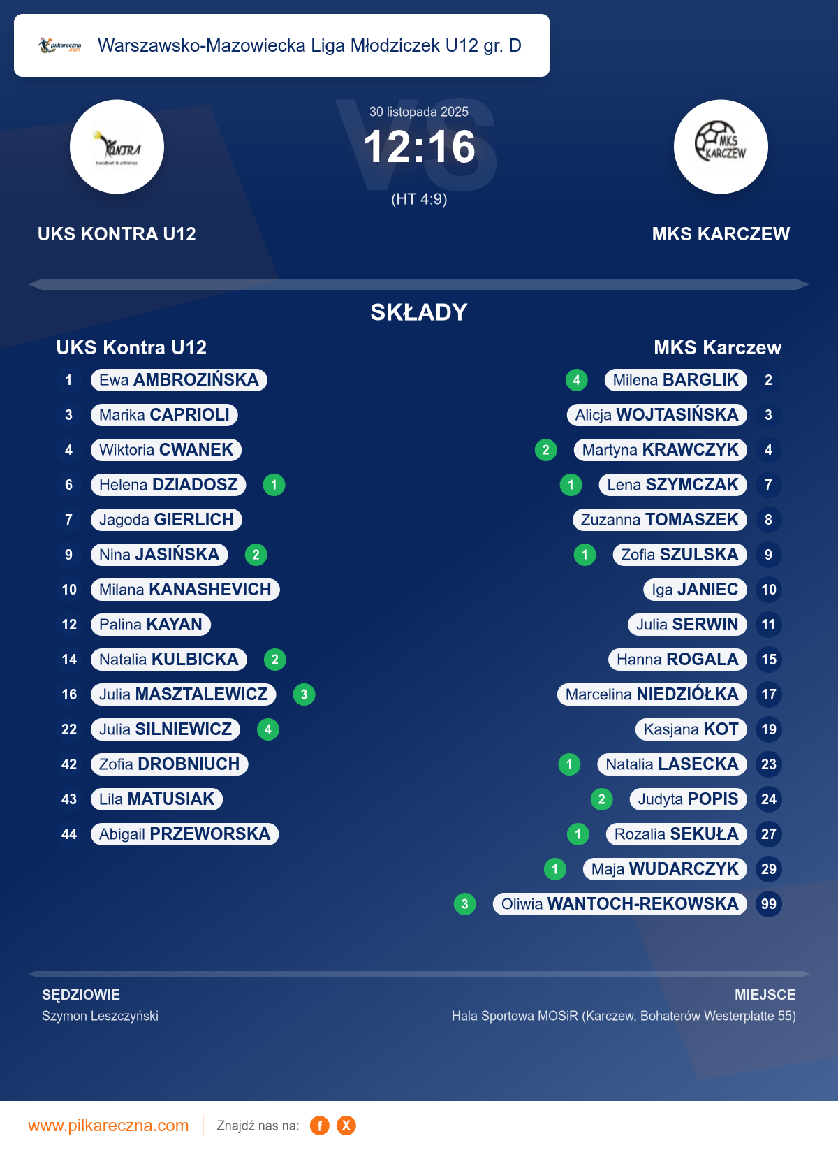 UKS Kontra U12 12–16 MKS Karczew