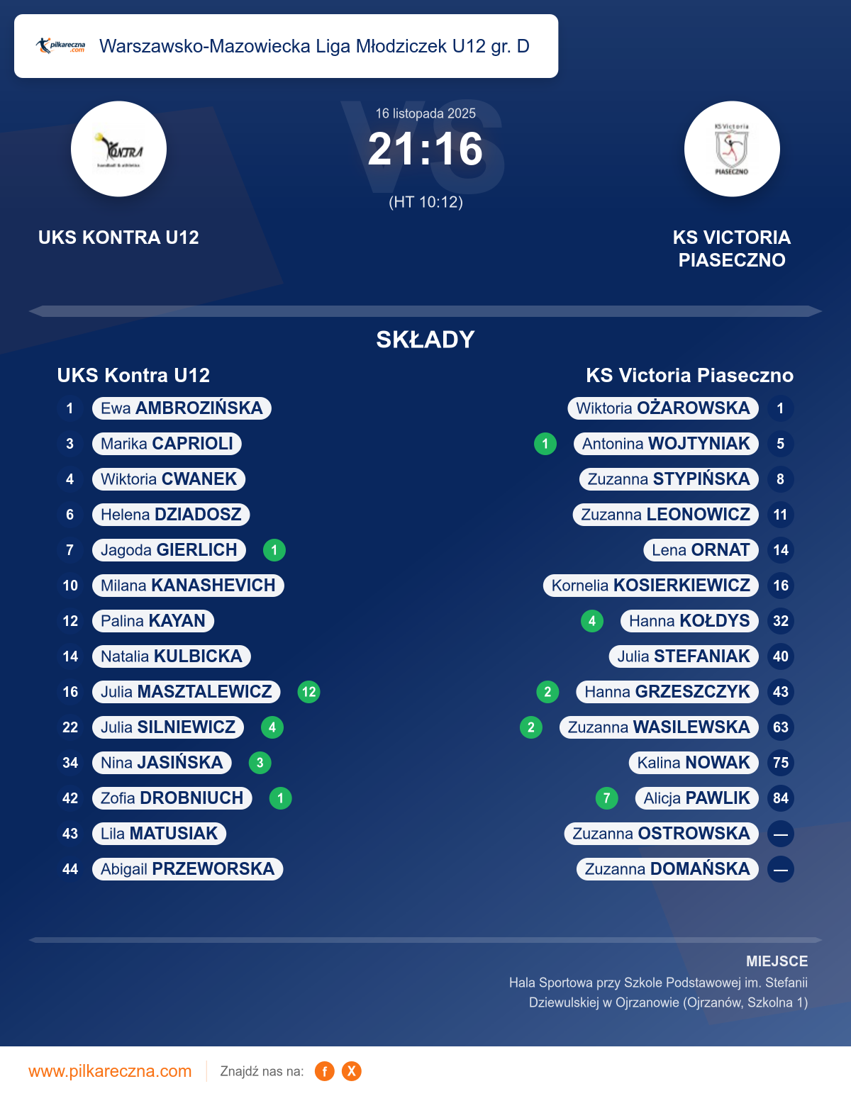 UKS Kontra U12 21–16 KS Victoria Piaseczno