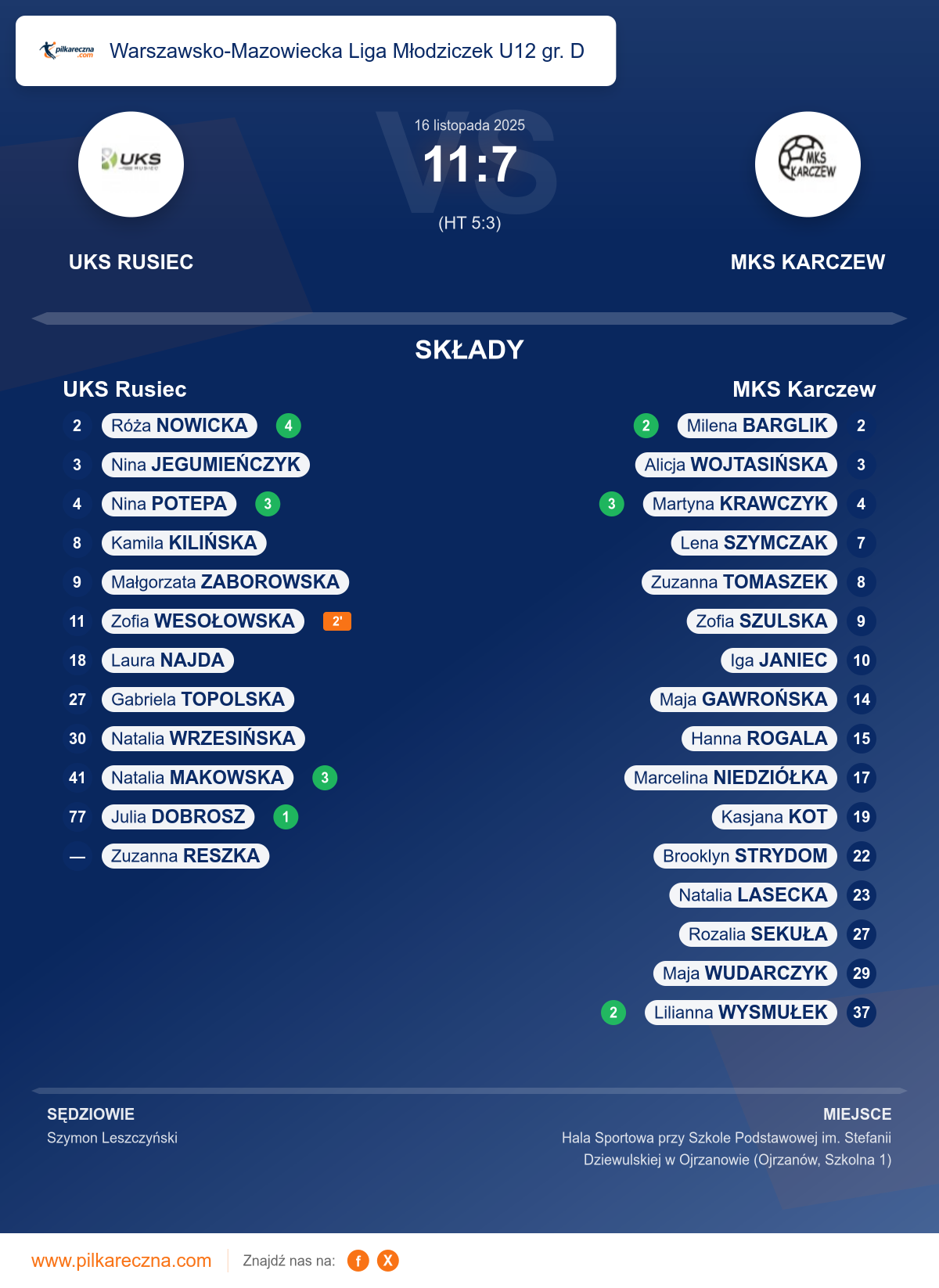 Zawodnicy: Róża Nowicka (4), Natalia Makowska (3), Nina Potepa (3), Julia Dobrosz (1), Gabriela Topolska, Kamila Kilińska, Laura Najda, Małgorzata Zaborowska, Natalia Wrzesińska, Nina Jegumieńczyk, Zofia Wesołowska, Zuzanna Reszka