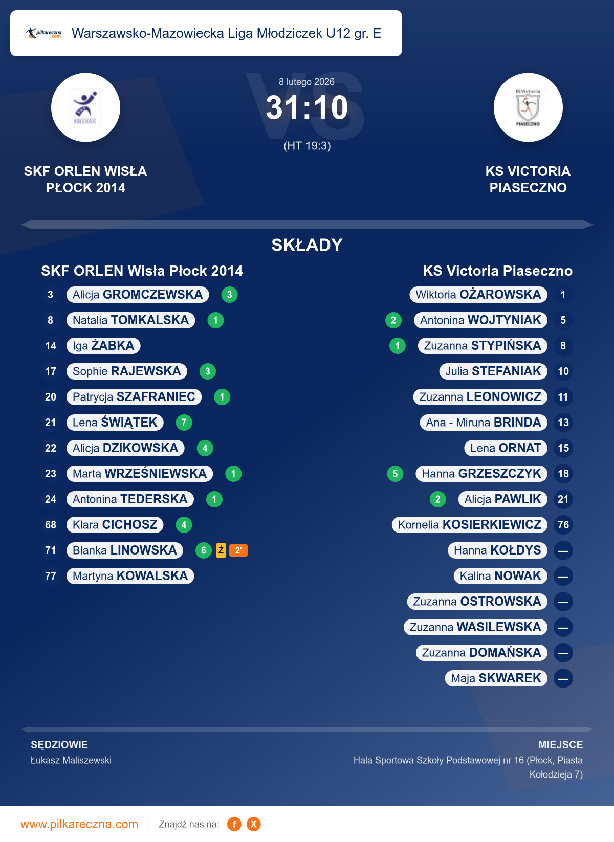 SKF ORLEN Wisła Płock 2014 31–10 KS Victoria Piaseczno
