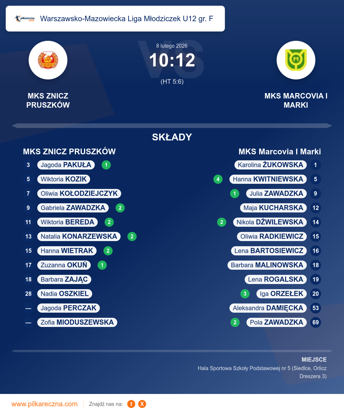 MKS ZNICZ PRUSZKÓW 10–12 MKS Marcovia I Marki