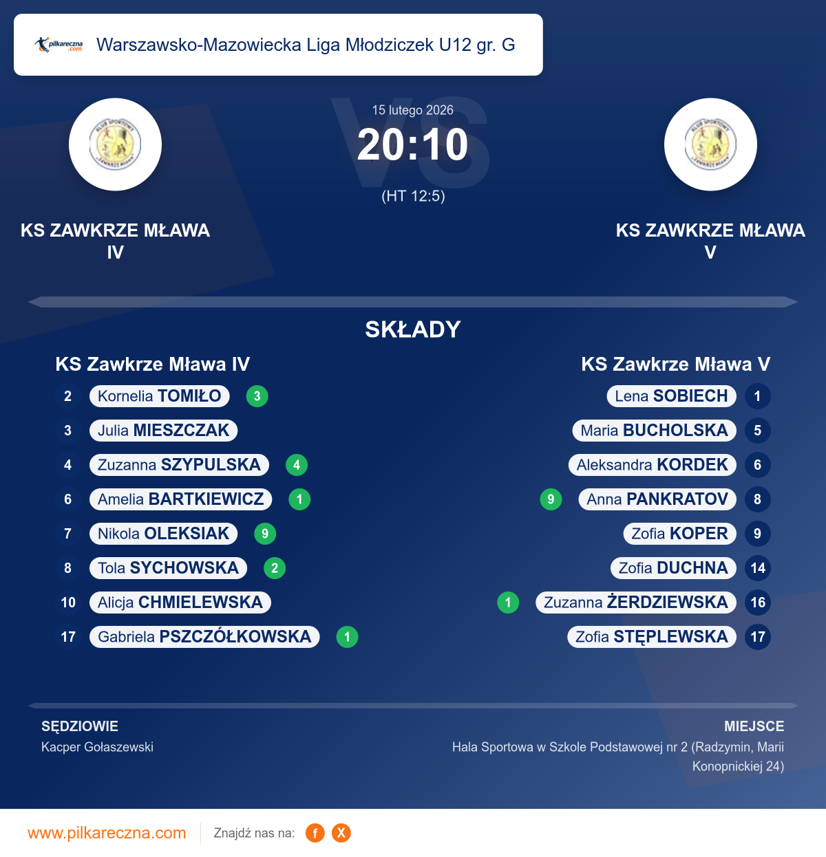 KS Zawkrze Mława IV 20–10 KS Zawkrze Mława V