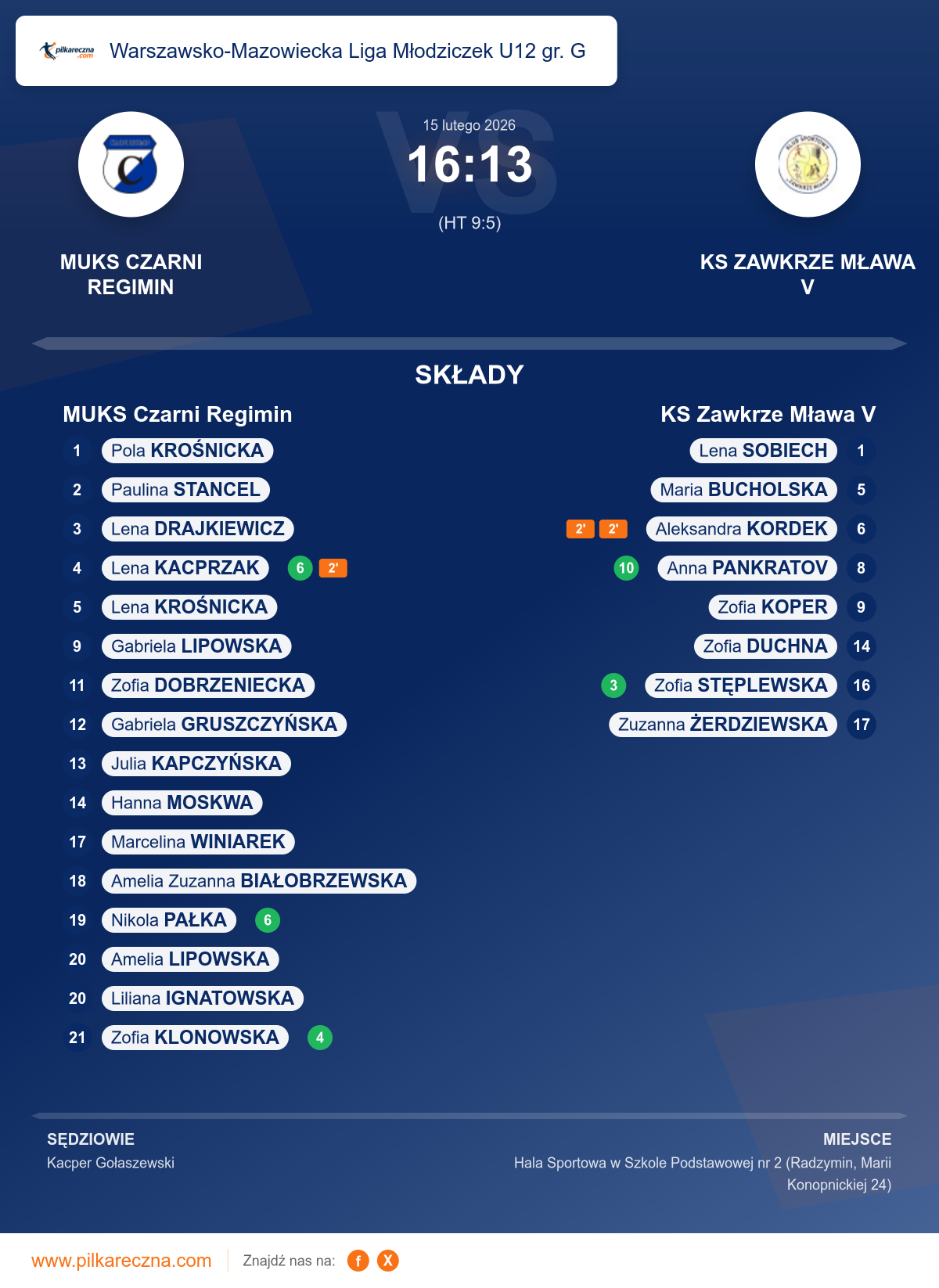 MUKS Czarni Regimin 16–13 KS Zawkrze Mława V